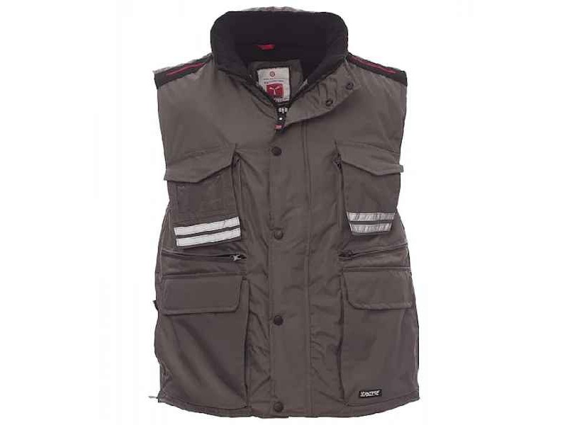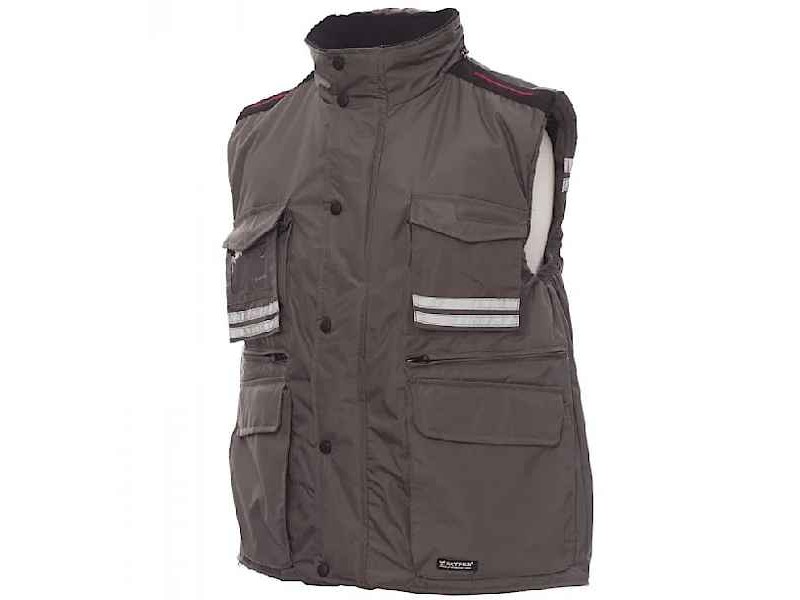 Αδιάβροχο Χειμερινό Γιλέκο Εργασίας Flight Γκρι Unisex PAYPER. Το αντιανεμικό, αδιάβροχο γιλέκο εργασίας Flight Γκρι Unisex PAYPER είναι η κατάλληλη επιλογή για εργαζόμενους και επαγγελματίες που αναζητούν άνεση και λειτουργικότητα κατά τη διάρκεια των ψυχρών μηνών. Το γιλέκο διατίθεται σε ευρεία γκάμα μεγεθών για άνδρες και γυναίκες (S-3XL) και προσφέρει εξατομικευμένη εφαρμογή, επιτρέποντας σε όλους να το φορούν με στυλ. Η κατασκευή του από 100% πολυεστέρα εξασφαλίζει ανθεκτικότητα και προστασία από τις καιρικές συνθήκες, παρέχοντας ταυτόχρονα μιαν ευχάριστη αίσθηση. Με πλαστικό φερμουάρ 8 mm και κλείσιμο με καπάκι και πλαστικά κουμπιά, το γιλέκο συνδυάζει ευχρηστία και ασφάλεια. Η αποσπώμενη και αναδιπλούμενη κουκούλα προσφέρει πρόσθετη προστασία, ενώ οι ανοιχτές-γκρι ανακλαστικές ταινίες στο μπροστινό και πίσω μέρος εξασφαλίζουν ορατότητα σε χαμηλές συνθήκες φωτισμού. Με εννέα εξωτερικές τσέπες, συμπεριλαμβανομένων τριών με σύστημα κλειδώματος και φερμουάρ, προσφέρει άφθονο χώρο για να διατηρείτε τα προσωπικά σας αντικείμενα ασφαλή και οργανωμένα. Η μαξιλαροειδής επένδυση στον γιακά, την πλάτη και τη μέση με micro-fleece προσφέρει απαλή αίσθηση και ζεστασιά, ενώ το εσωτερικό κορδόνι και φερμουάρ διευκολύνουν την εκτύπωση και κέντημα του γιλέκου, κάνοντάς το πρόσφορο για εταιρικές ή επαγγελματικές εφαρμογές. Με την εξαιρετική σχέση ποιότητας-τιμής, το γιλέκο Flight αποτελεί μια χρήσιμη προσθήκη στη ντουλάπα κάθε εργαζόμενου, εργαζομενης και επαγγελματία που εργάζεται σε εξωτερικούς χώρους, συνδυάζοντας τη λειτουργικότητα με το στυλ.