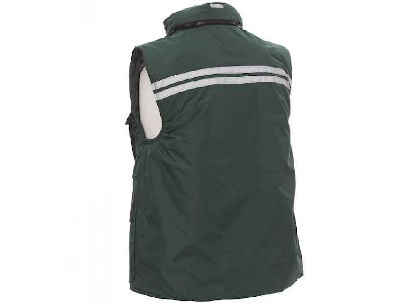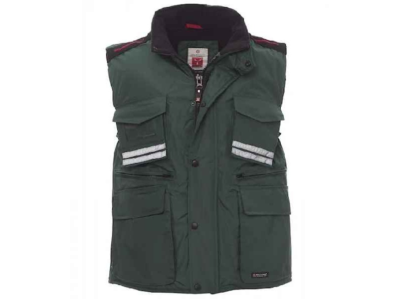 Αδιάβροχο Χειμερινό Γιλέκο Εργασίας Flight Πράσινο Unisex PAYPER. Το αντιανεμικό, αδιάβροχο γιλέκο εργασίας Flight Πράσινο Unisex PAYPER είναι η κατάλληλη επιλογή για εργαζόμενους και επαγγελματίες που αναζητούν άνεση και λειτουργικότητα κατά τη διάρκεια των ψυχρών μηνών. Το γιλέκο διατίθεται σε ευρεία γκάμα μεγεθών για άνδρες και γυναίκες (S-3XL) και προσφέρει εξατομικευμένη εφαρμογή, επιτρέποντας σε όλους να το φορούν με στυλ. Η κατασκευή του από 100% πολυεστέρα εξασφαλίζει ανθεκτικότητα και προστασία από τις καιρικές συνθήκες, παρέχοντας ταυτόχρονα μιαν ευχάριστη αίσθηση. Με πλαστικό φερμουάρ 8 mm και κλείσιμο με καπάκι και πλαστικά κουμπιά, το γιλέκο συνδυάζει ευχρηστία και ασφάλεια. Η αποσπώμενη και αναδιπλούμενη κουκούλα προσφέρει πρόσθετη προστασία, ενώ οι ανοιχτές-γκρι ανακλαστικές ταινίες στο μπροστινό και πίσω μέρος εξασφαλίζουν ορατότητα σε χαμηλές συνθήκες φωτισμού. Με εννέα εξωτερικές τσέπες, συμπεριλαμβανομένων τριών με σύστημα κλειδώματος και φερμουάρ, προσφέρει άφθονο χώρο για να διατηρείτε τα προσωπικά σας αντικείμενα ασφαλή και οργανωμένα. Η μαξιλαροειδής επένδυση στον γιακά, την πλάτη και τη μέση με micro-fleece προσφέρει απαλή αίσθηση και ζεστασιά, ενώ το εσωτερικό κορδόνι και φερμουάρ διευκολύνουν την εκτύπωση και κέντημα του γιλέκου, κάνοντάς το πρόσφορο για εταιρικές ή επαγγελματικές εφαρμογές. Με την εξαιρετική σχέση ποιότητας-τιμής, το γιλέκο Flight αποτελεί μια χρήσιμη προσθήκη στη ντουλάπα κάθε εργαζόμενου, εργαζομενης και επαγγελματία που εργάζεται σε εξωτερικούς χώρους, συνδυάζοντας τη λειτουργικότητα με το στυλ.
