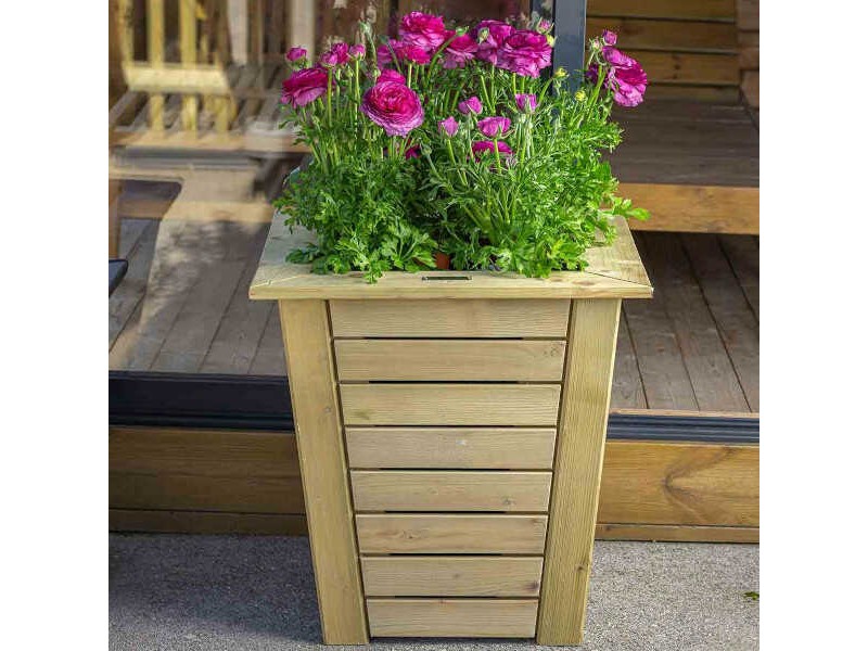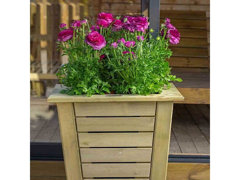 Ξύλινη Γλάστρα Κωνική 77(Υ)x65x65cm - Εμποτισμένες Τετράγωνες Ξύλινες Γλάστρες. Η τετράγωνη κωνικής φόρμας ξύλινη γλάστρα κατασκευάζεται εξ ολοκλήρου από εμποτισμένο τετραγωνικής διατομής ξύλο. Η ξύλινη γλάστρα είναι κατάλληλη για την φύτευση μέσης και σχετικά μεγάλης ανάπτυξης φυτών τοπιοτεχνίας, θάμνων και μικρών δέντρων. Προέρχεται από Σκανδιναβικά δάση τα οποία έχουν υλοτομηθεί με γνώμονα την αειφορία και έχει υποστεί επεξεργασία με τη μέθοδο Tanalith, που την καθιστά πιο ανθεκτική σε σήψη, μούχλα, μύκητες, έντομα και ακραίες καιρικές συνθήκες. Επίσης, διαθέτει μεμβράνη εσωτερικά, που συγκρατεί το εδαφικό μίγμα αλλά επιτρέπει την απορροή των πλεοναζόντων υδάτων και του αέρα στο φυτευτικό μέσο. Παρέχεται άβαφη, με την επιλογή βαφής στο επιθυμητό χρώμα, κατόπιν συνεννόησης.