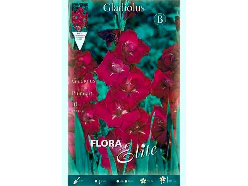 Βολβοί δίχρωμης υβριδικής Γλαδιόλας με πορφυρό και λευκό χρώμα άνθους. Η ποικιλία Plum Tart είναι βολβώδες φυτό ανοιξιάτικης φύτευσης το ύψος του οποίου μπορεί να φτάσει το 1 m. Οι Γλαδιόλες ανθοφορούν περίπου 12 εβδομάδες μετά την φύτευσή τους, με μεγάλου μεγέθους και εντυπωσιακών χρωμάτων άνθη. Οι βολβοί των Γλαδίολων μπορούν να φυτευτούν στον κήπο ή σε γλάστρα και ζαρντινιέρα. Για την φύτευση σε γλάστρες και ζαρντινιέρες απαιτείται υψηλής ποιότητας εδαφικό μείγμα, καθώς και ελαφρόπετρα ή άλλο παρεμφερές υλικό, στην περιοχή του πάτου, για διευκόλυνση της στράγγισης, η οποία στην περίπτωση των βολβωδών φυτών πρέπει να είναι άριστη. Η διαδοχική ανά 15 ημέρες φύτευση του Γλαδίολου Plum Tart εξασφαλίζει την συνεχή ανθισμένη παρουσία του.