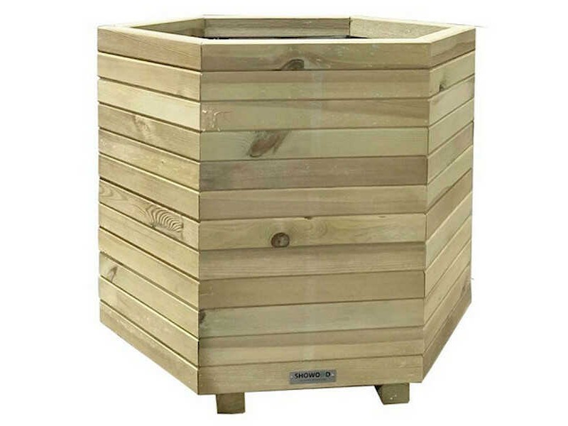 Ξύλινη Γλάστρα Εξάγωνη Εξάγωνη 56(Υ)xΦ65cm με Γωνίες Εσωτερικές