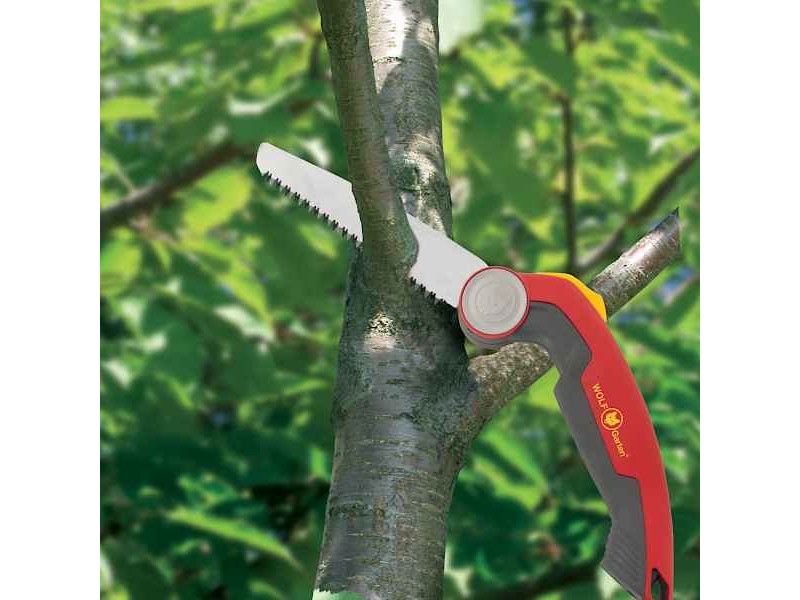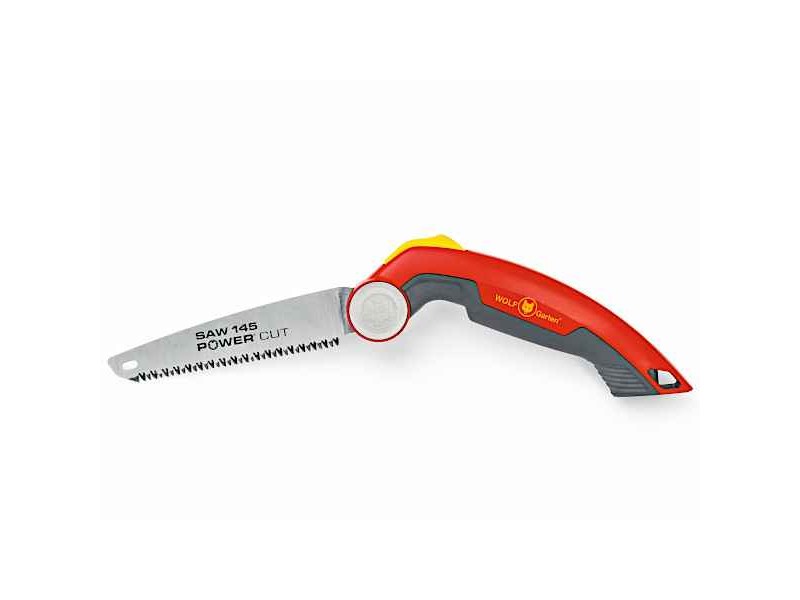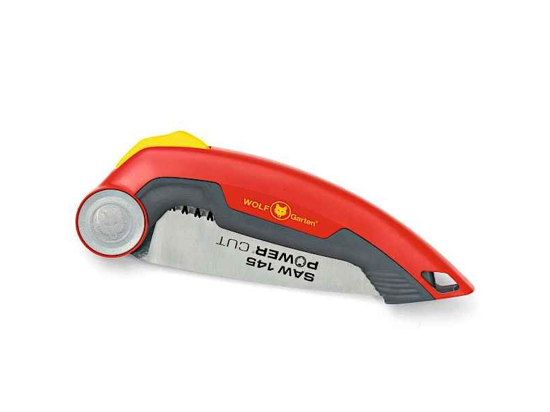 WOLF-Garten Power Cut 145 Folding Saw 14.5cm. Professional pruning saws for trees and large shrubs are among the essential care tools that landscape and forestry professionals as well as for any gardener who wants to professionally cut limbs, branches and shoots must have. The choice of professional saws Power Cut 145 is the right one, as they have a double hardened Swedish steel blade with two rows of teeth, which provides an extremely smooth cut, accurate and clean, which does not hurt the plants, and thus avoids bacterial infection and the entry of other pathogenic microorganisms into trees and shrubs, while at the same time making pruning work easier. The extremely comfortable handle with its flexible and stable grip points of the saw also contributes to this.