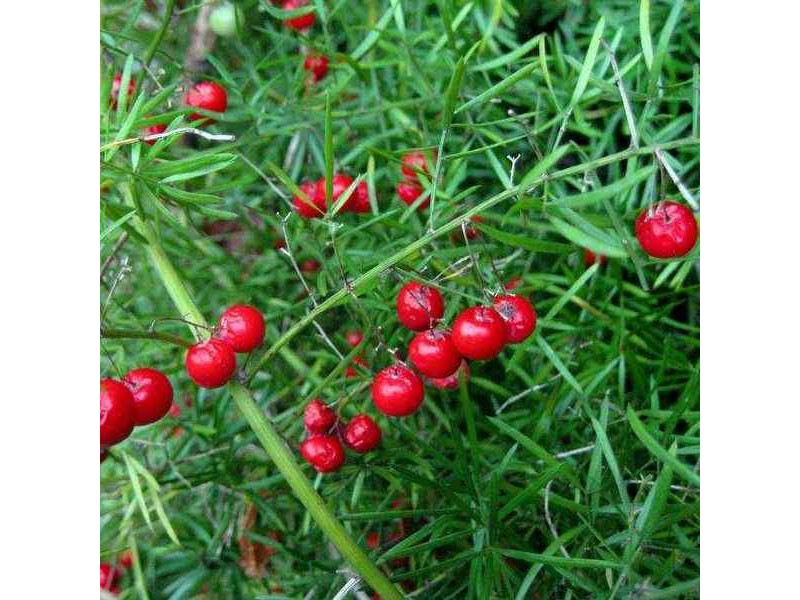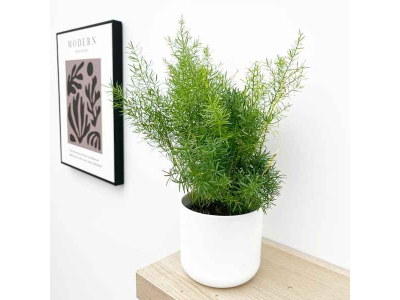 Sprengeri Asparagus Fern (Asparagus densiflorus 'Sprengeri') Plant. Timelessly decorative variety of interior and exterior spaces. Sprengeri Asparagus Fern (Asparagus densiflorus) botanically belongs to the Asparagaceae family, and is native to the southern part of the African continent. It is a perennial, tuberous, evergreen species, of fast growth rate and arching in appearance, with a dense canopy and a size of about 1 metre. On the stems, which emerge directly from the ground, the branchlets appear, which are green and look like leaves - but they are not. The actual leaves are scale-like, small and inconspicuous. In summer, Sprengeri Asparagus Fern blooms - though rarely in cultivation - with tiny, fragrant, white or cream flowers borne on a panicle inflorescence. This is followed by red-coloured small ovoid fruits, up to 1,5 cm in size, on which several species of birds feed. Sprengeri Asparagus Fern is a relatively easy plant to grow, as it can adapt to almost any possible exposure to light, temperature fluctuations and watering frequency. It is used in various ways in gardening and landscape architecture, usually planted alone, in groups in gardens and parks, in compositions with other plants or for ground cover. It also makes a wonderful decoration for homes, offices and business premises.