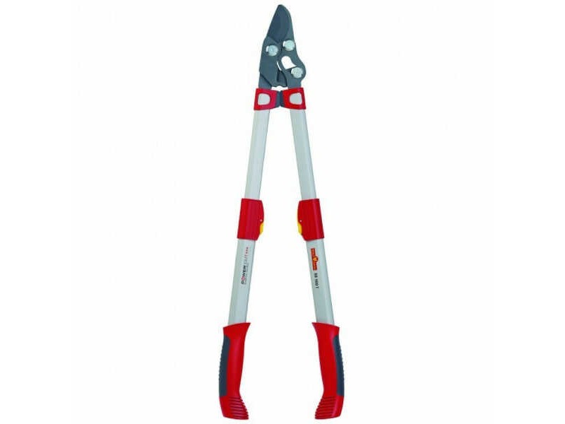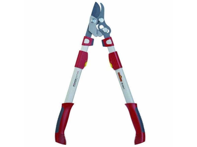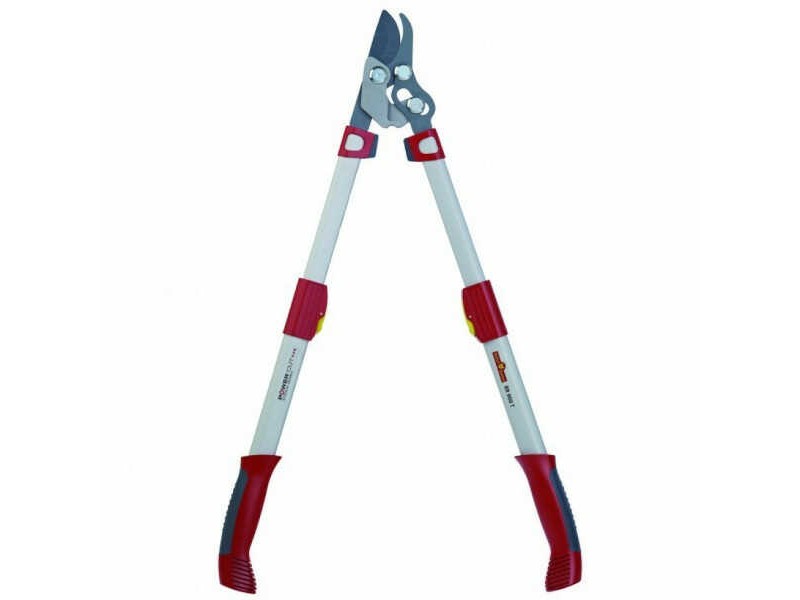 Wolf-Garten Bypass Lopper RR 900 T 4X POWER CUT. Branch cutting tools from the leading German manufacturer of quality tools Wolf-Garten. The vertical cutting telescopic anvil loppers RR 900 T easily cut through hard or dead wood of shrubs and trees, making precise and clean cuts. They feature new cutting head technology that makes them more comfortable to use for both beginners and professionals. Thanks to this innovative technology, the comfort of use results from quadrupling the amount of force applied to the loopers by the user, which is ultimately exerted on the branch during the cut. WOLF's RR 900T Loppers consist of heavy-duty non-stick bladeswhich can be precisely adjusted and replaced, as well as aluminum telescopic handles. The aluminum handles are coated with 2 soft non-slip materials (plastic and rubber), to reduce the strain on the user. Also, the tool's headed bolts are flat to avoid unnecessary damage to the bark of trees and shrubs. The Wolf-Garten Bypass Lopper RR 900 T 4X POWER CUT has a cutting diameter of up to 50mm, a weight of 1.55 kg and a length ranging from 65 to 90cm. It is suitable for cutting branches located at high points, and particularly effective for distance pruning of garden, landscape, orchard and vineyard plants. It is offered with a 10 year warranty.