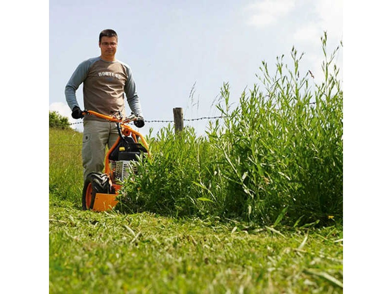 Meadow orchards characterize the landscape of diverse regions and provide valuable ecosystems for insect and bird life. Maintaining these areas often involves mowing around trees, on slopes and in rough terrain.