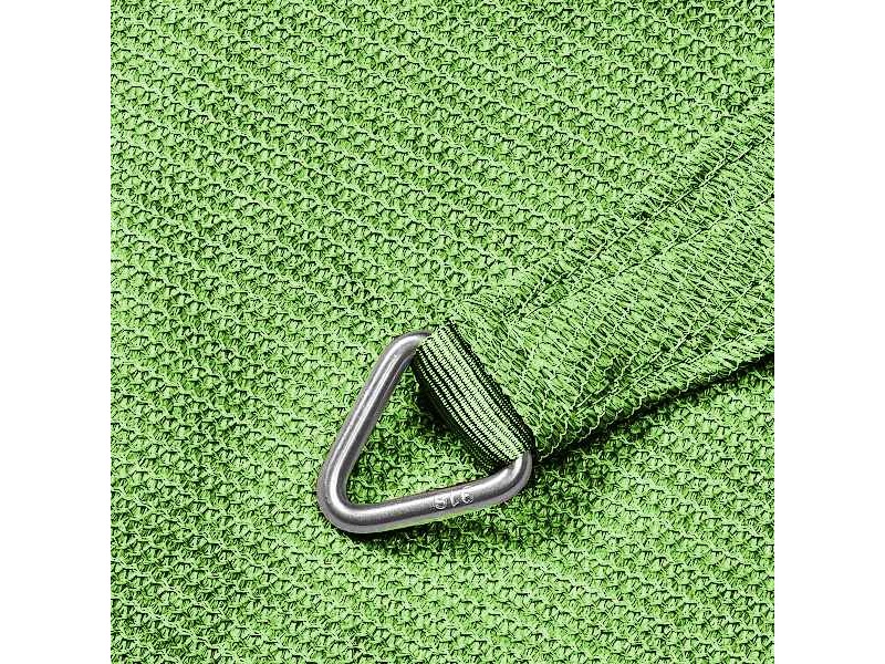 PLATINUM Shade Sail Coolfit® Square 5x5m 285gsm Lime (NESLING). The Nesling's Coolfit® PLATINUM square shade sail, measuring 5x5m and weighing 285gsm, is a desirable addition to any outdoor space, garden or terrace. The open structure of the HDPE (high density polyethylene) fabric offers a pleasant, spacious feel whilst allowing water and air to pass through. This feature makes it durable and suitable for use throughout the season, without having to store it constantly. In addition, it provides up to 95% protection from UV rays, allowing you to relax outdoors, enjoying the coolness and shade it provides, without worrying about the sun. The construction of the shade sail is of high quality, with reinforced 316 stainless steel triangular loops at each corner, ensuring durability and longevity over time. Maintenance is particularly simple, as it is easily cleaned with a soft brush, lukewarm water and green soap. When installing, 40 cm of extra space in width and length for fixing materials must be taken into account. The PLATINUM Shade Sail Coolfit® Square 5x5m 285gsm is so far available in the following colours: Sand, Grey, Ecru, Terracotta, Lime, and Black. The packaging measures 46 x 42 x 21cm.
