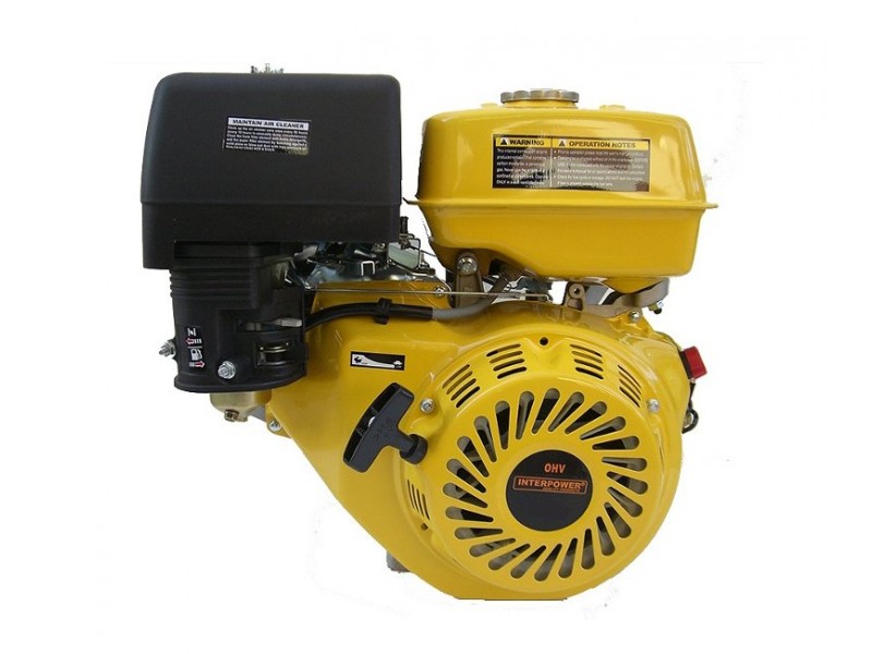Βενζινοκινητήρας OHV Interpower 6,5 hp 168FA Q Σφήνα - 3000 rpm. Εξαιρετικής ποιότητας βενζινοκινητήρας μεγάλης απόδοσης με ταυτόχρονη οικονομία στο καύσιμο. Στα πλεονεκτήματα του βενζινοκινητήρα περιλαμβάνονται η μειωμένη εκπομπή θορύβου, ο διακόπτης ασφαλείας On-Off με έλεγχο της στάθμης του λαδιού καθώς και η μεταλλική χειρόμιζα. Ο διακόπτης On-Off με έλεγχο της στάθμης του λαδιού, επιτρέπει σε αυτά τα μοντέλα βενζινοκινητήρων της Interpower, την άμεση διακοπή της λειτουργίας τους στην περίπτωση που τα λάδια έχουν τελειώσει και δεν δίνει την δυνατότητα επανεκκίνησής τους. Η μεταλλική χειρόμιζα με την οποία είναι εφοδιασμένοι οι βενζινοκινητήρες της Interpower προσδίδουν στα μηχανήματα την μέγιστη δυνατή ανθεκτικότητα, παρέχοντας τα εχέγγυα για πολύχρονη χρήση.