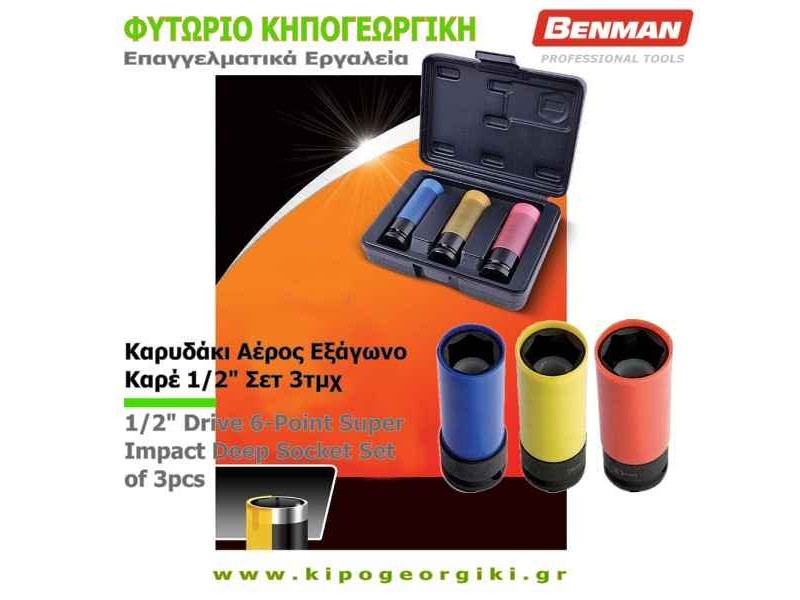 Το Σετ 3 τεμαχίων με Καρυδάκι Αέρος Εξάγωνου Καρέ 1/2" και μεγέθους 17, 19 και 21mm (71071), που παράγεται από την Ελληνική βιομηχανία Benman, αποτελεί έναν εξαιρετικό σύμμαχο για κάθε επαγγελματία και ερασιτέχνη στο πεδίο των μηχανικών εφαρμογών. Τα εξάγωνα καρυδάκια διαθέτουν υποδοχή καρέ 1/2", που τα καθιστά κατάλληλα για σύνδεση με καστάνιες ή μανέλες του αντίστοιχου μεγέθους. Κατασκευάζονται από κράμα χάλυβα με χρώμιο και μολυβδαίνιο (ή χρωμομολυβδαίνιο, Cr-Mo), όπου τα τελευταία καθιστούν τον χάλυβα ισχυρότερο, σκληρότερο, ανθεκτικότερο και ευκολότερο στη σκλήρυνση. Η στιβαρή κατασκευή τους διαθέτοντας και δακτύλιο ενίσχυσης, εξασφαλίζει υψηλή αντοχή και τριπλάσια διάρκεια ζωής σε σύγκριση με τα κλασικά καρυδάκια αέρος με λεπτό τοίχωμα, σύμφωνα με τις δοκιμές του κατασκευαστή. Ένα ιδιαίτερο χαρακτηριστικό καθενός εκ των εν λόγω καρυδακιών είναι τα δύο προστατευτικά καλύμματα που διαθέτει – ένα εσωτερικό και ένα εξωτερικό. Το εξωτερικό κάλυμμα προφυλάσσει ειδικά τις επιφάνειες των τροχών από φθορές, ενώ το εσωτερικό προφυλάσσει από τις ζημιές που μπορεί να προκληθούν στα παξιμάδια και τα μπουλόνια κατά τη διάρκεια των εργασιών. Αυτή η καινοτόμος σχεδίαση εξασφαλίζει την αρτιότητα και την αποτελεσματικότητα στις εφαρμογές σφιξίματος, όταν πρόκειται να αντιμετωπιστούν χαλαρές βίδες και παξιμάδια διαμέτρου 17, 19 και 21mm. Με ορθή σχέση ποιότητας-τιμής, το Σετ 3 τεμαχίων με Καρυδάκι Αέρος της Benman είναι ένα αναγκαίο αξεσουάρ για την εργαλειοθήκη κάθε επαγγελματία, προσφέροντας αξιοπιστία και αντοχή σε μακροχρόνιες χρήσεις. Επιπλέον, η υποστήριξη του προϊόντος με διαθέσιμα ανταλλακτικά προστατευτικά καλύμματα ενισχύει τη βιωσιμότητα και τη φιλικότητα προς τον χρήστη του, διευκολύνοντας τη συντήρηση και τη διάρκεια ζωής του εργαλείου. Το Σετ προσφέρεται σε πρακτική και καλαίσθητη πλαστική κασετίνα.