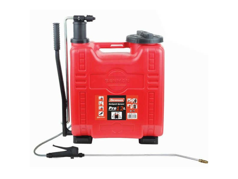 Backpack Sprayer 12L BENMAN 77131. Made in Italy of general purpose plastic pre-pressure sprayers, by BENMAN. It is designed for any application of spray liquid, such as fungicides, insecticides, herbicides, as well as water-soluble fertilizers for foliar application. Made of high quality heavy-duty PVC, it has a durable internal mechanism, nozzle with liquid beam regulator, and a very powerful pump for its class. The Backpack Sprayer 12L is suitable for home and professional use, in the garden, on the balcony, in pots and planters, as well as for floricultural, viticultural and arboricultural works of controlled spraying.