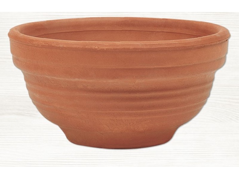Round Clay Plant Pot LEKANAKI Ø16,5 x (H)8,5cm terracotta color is included in the Series of ATTIKA terracotta and ceramic machine pots and planters, manufactured by the leading Greek company in the production of ceramic - pottery products Ceramart. Round Clay Plant Pot LEKANAKI Ø16,5 x (H)8,5cm is an elegant Italian design, with a characteristic concave shape, with a slightly open protruding lip and a narrow bottom, adorned with four rows of embossed strips - two parallel to the neck, one in the lower third of the pot and one with wavy shape between them. It is made of specially processed red colored clay that gives it exceptional stability and durability.