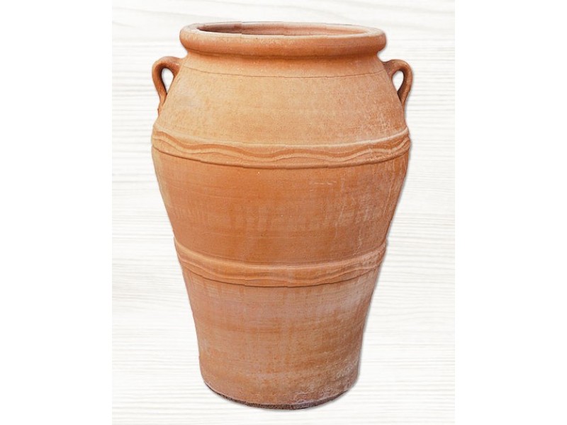 The handmade Round Clay Plant Pot PITHOS Ø45 x (H)70cm light brown-terracotta color is included in the Series of CRETE terracotta and ceramic machine pots and planters, manufactured by the leading Greek company in the production of high quality ceramic - pottery products Ceramart. Round Clay Plant Pot PITHOS Ø45 x (H)70cm has the shape of a minoan jar, a body ending in a narrow base, handles and a wide curved protruding rim. In the area of the body it is decorated by 2 strips with wavy horizontal lines. It is made of specially processed light colored clay that gives it exceptional stability and durability. It should be noted that the form of the pot is based on traditional designs, and that there are small differences between the pots, depending on the artist-potter.