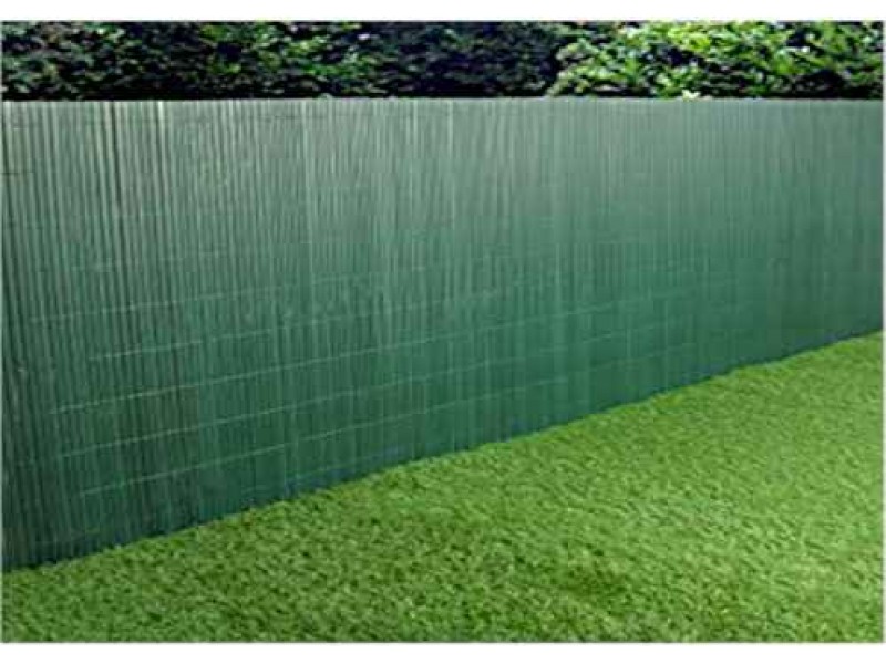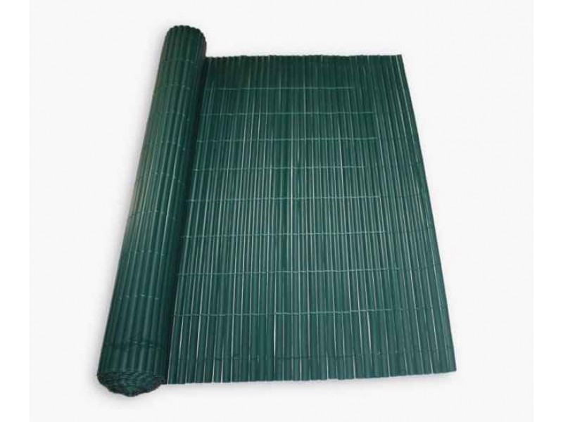 H συνθετική Καλαμωτή PVC 20mm/150(Υ)x500cm σε Πράσινο Χρώμα Διπλής Όψης είναι εξαιρετικά ανθεκτική και καλαίσθητη. Αποτελείται από σωλήνες Πολυβινυλοχλωρίδιου πλάτους 2 εκατοστών και προσφέρει σε σχέση με τις φυσικές καλαμωτές επιπλέον πυκνότητα κάλυψης. Η πλέξη των συνθετικών καλαμωτών γίνεται ανά 100 mm με υψηλής ποιότητας και μεγάλης αντοχής συνθετικό νήμα, που τους χαρίζει ιδιαίτερη ευελιξία. Οι συνθετικές καλαμωτές είναι κατάλληλες για την περιφράξη οποιουδήποτε χώρου και την δημιουργία οπτικών φραγμάτων, ενώ εφαρμόζεται σε μπαλκόνια, πέργκολες, καθώς και σε κάθε άλλη προσφερόμενη για περιφράξεις κατασκευή.