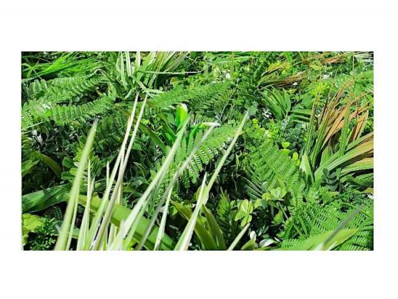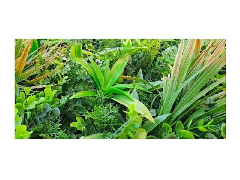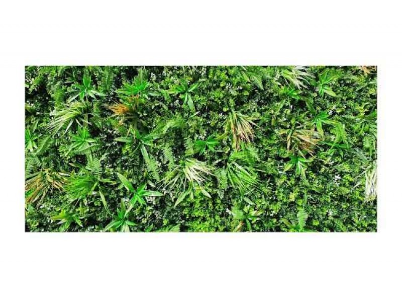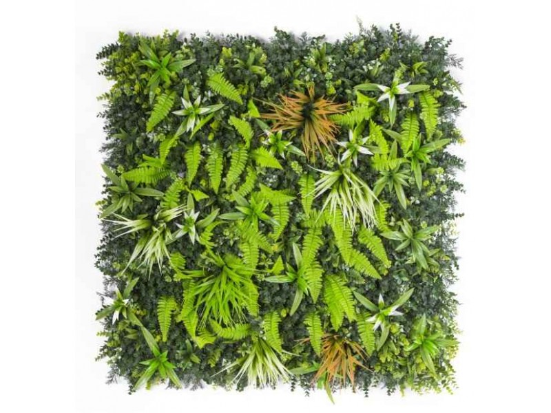 Synthetic Green Wall Tile Jungle Mix 100x100cm of Ecoshadow is made of high quality raw material. Durable and highly ornamental, it can be used both for indoor or outdoor walls or similar constructions. Although artificial, gives the feeling of natural foliage and does not need any kind of care.