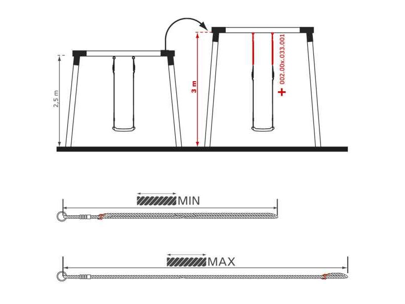 Adjustment Rope 100cm with Metal Rings & Eights KBT. The KBT 100 cm Swing Extension Rope is the ideal solution for adjusting a swing to fit any playground, whether residential or commercial. Designed to extend the length of existing swing accessories, this adjustable rope allows safe and precise installation of swing seats, trapezes, or other swing components when the height of the support beam does not match the required dimensions. With a length of 100 cm, it offers excellent flexibility in height adjustment, ensuring proper ergonomics and a comfortable swinging experience for children. The product is made from high-quality, durable materials, engineered to withstand intensive use, weather exposure, and long-term wear, making it suitable for outdoor environments. KBT extension ropes are compatible with most swing systems and are a reliable choice for both private users and professionals involved in playground equipment installation. All KBT products undergo strict quality control and are certified according to the latest European safety standards, with official approval from the independent TUV NORD organization, providing maximum confidence for parents and playground operators. By choosing the KBT swing extension rope, you invest in safety, functionality, and long-lasting performance, enhancing the play experience while ensuring that every swing is perfectly adapted to the height and structure of your playground setup.