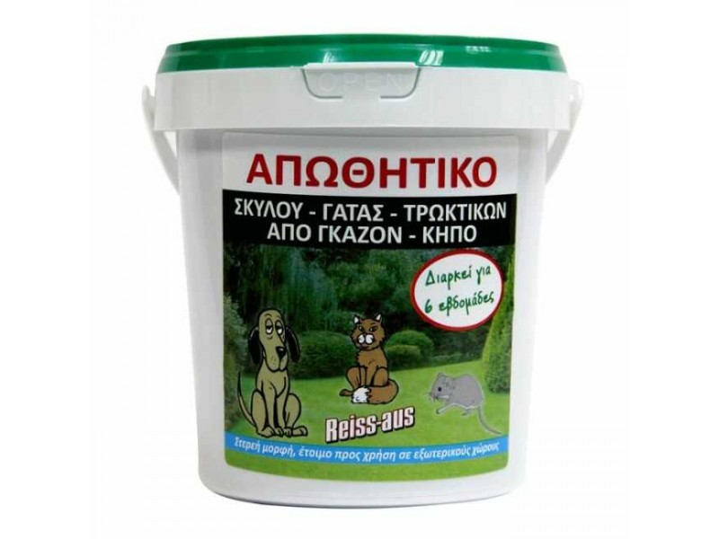Dog-Cat-Rodent Repellent Agrogen 1lt Liquid. The repellent for dogs, cats, mice and rats works with the smell, which repels animals, and does not allow them to concentrate in urban areas, in houses, on the lawn, in the garden, in the yard, in flower beds, in playgrounds, nurseries, airports, and sports facilities (tennis, soccer courts) causing all kinds of disasters - even with their feces. The duration of the repellent action is six (6) weeks from the application, and the continuous repetition solves the problem of damage, and the presence of feces. The Dog-Cat-Rodent Repellent is available in liquid form and is ready to use.