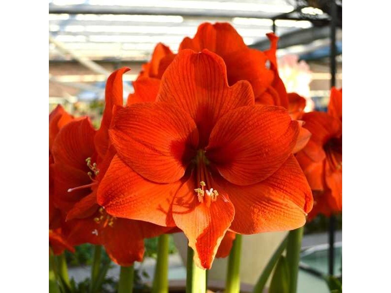 Amaryllis Orange: monochrome Amaryllis bulbs with orange flower color. Bulbous plant of autumn and spring planting whose height can reach 0.50 m. Amaryllis blooms about 7 weeks after planting, with large and strikingly colored flowers. Amaryllis bulbs can be planted in the garden or in a pot and planter. Planting in pots and planters requires a high quality soil mixture, as well as pumice or other similar material, in the area of the flowerpot bottom, to facilitate drainage, which in the case of bulbous plants should be excellent.