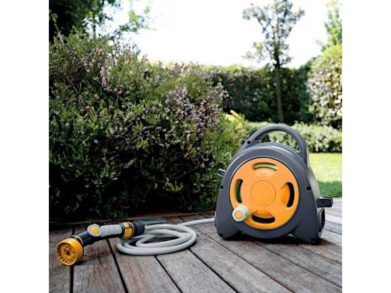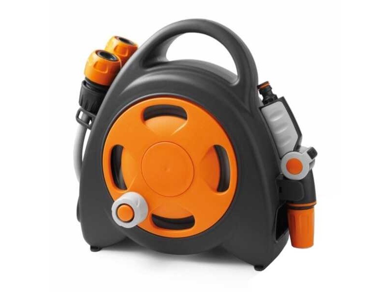 The Aqua Bag Maxi Hose Reel 16.5 with rubber tube 16.5m meters (15 meters wrapped inside + 1.5 meters outside) is a product of the leading company and in watering and irrigation accessories G.F. The portable hose reel is lightweight, pre-assembled and ready to use. The winding and unwinding of the watering hose is comfortable and its lifespan is long. The portable hose is extremely functional as it allows the watering of plants and flowers in the garden, on the terrace or on the balcony, both transported and resting on the ground or on the floor. The Aqua Bag Maxi Hose Reel has 2 Soft Touch connectors, an ergonomic jet with adjustable flow of 8 different types, as well as a 3/4 " adaptor, suitable for connection to any type of tap, even indoor (kitchen, bathroom, washing machine). The Aqua Bag Maxi can be used, in addition to gardens, in campsites, trailers and boats for washing or soaking.