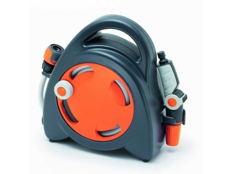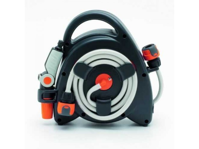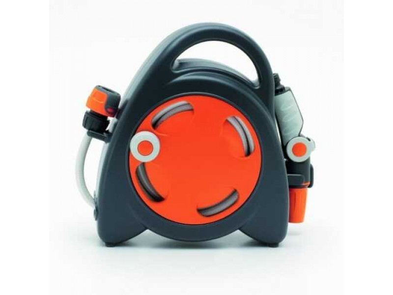The Aqua Bag Mini Hose Reel 11.5 with rubber tube 11.5m meters (105 meters wrapped inside + 1.5 meters outside) is a product of the leading company and in watering and irrigation accessories G.F. The portable hose reel is lightweight, pre-assembled and ready to use. The winding and unwinding of the watering hose is comfortable and its lifespan is long. The portable hose is extremely functional as it allows the watering of plants and flowers in the garden, on the terrace or on the balcony, both transported and resting on the ground or on the floor. The Aqua Bag Mini Hose Reel has 2 Soft Touch connectors, a "3 JET” variable flow-rate ergonomically designed nozzle, as well as a 3/4 " adaptor, suitable for connection to any type of tap, even indoor (kitchen, bathroom, washing machine). The Aqua Bag Mini can be used, in addition to gardens, in campsites, trailers and boats for washing or soaking.