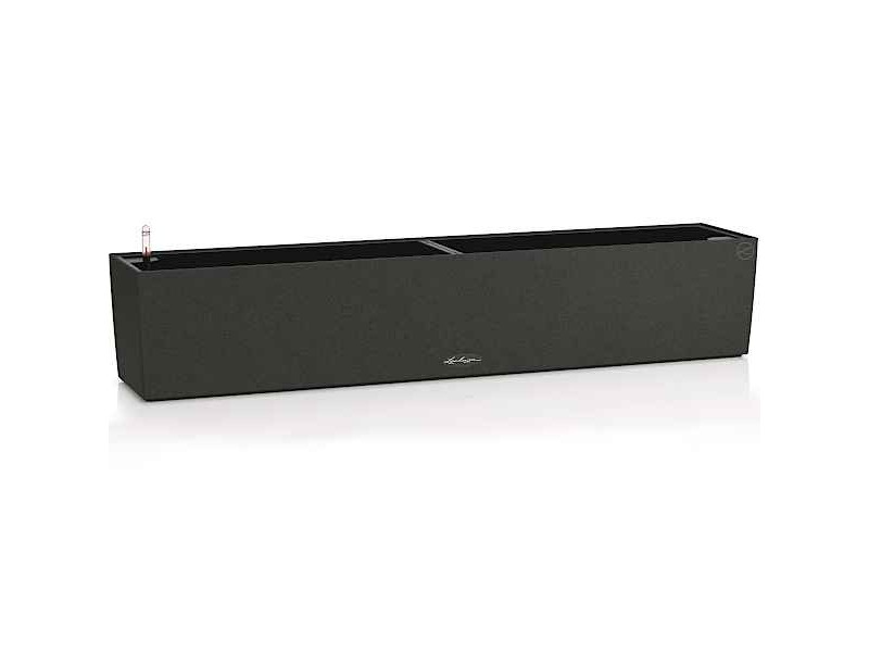BALCONERA Stone 100 Black Self-Watering Planter 100x19x19cm LECHUZA. The planters - cachepots of the BALCONERA Stone series are characterized by the minimalist design simplicity and the appearance and texture of natural stone. They can be placed indoors or outdoors, showing a great contrast of colors and shapes with the flowering plants or foliage plants, with which they will be planted. The BALCONERA Stone 100 Lechuza Self-Watering Planters have a matte appearance, while they are provided as a complete set, together with the self-watering system, the inner planter liner, as well as with Lechuza-Pon, the special planting substrate of LECHUZA. The LECHUZA's exclusive irrigation system (Sub-Irrigation System) guarantees an optimal supply of water and nutrients to the plants for 3 to 4 months. Also, every round planter of the BALCONERA Stone Series does not show the phenomenon of water overflow, since it has a drainage valve. Thanks to the existence of the drainage valve, the plant pots of the BALCONERA Stone Series fully respond to the role of a cachepot and a planter. The BALCONERA Stone 100 Lechuza is so far available in four colors, Stone Gray, Sand Beige, Graphite Black, and Quartz White.
