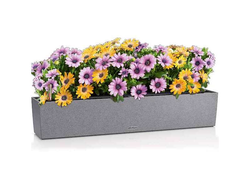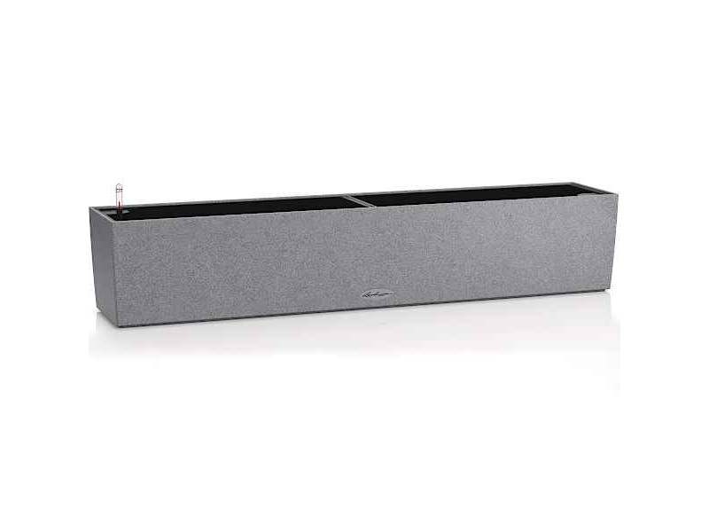 BALCONERA Stone 100 Grey Self-Watering Planter 100x19x19cm LECHUZA. The planters - cachepots of the BALCONERA Stone series are characterized by the minimalist design simplicity and the appearance and texture of natural stone. They can be placed indoors or outdoors, showing a great contrast of colors and shapes with the flowering plants or foliage plants, with which they will be planted. The BALCONERA Stone 100 Lechuza Self-Watering Planters have a matte appearance, while they are provided as a complete set, together with the self-watering system, the inner planter liner, as well as with Lechuza-Pon, the special planting substrate of LECHUZA. The LECHUZA's exclusive irrigation system (Sub-Irrigation System) guarantees an optimal supply of water and nutrients to the plants for 3 to 4 months. Also, every round planter of the BALCONERA Stone Series does not show the phenomenon of water overflow, since it has a drainage valve. Thanks to the existence of the drainage valve, the plant pots of the BALCONERA Stone Series fully respond to the role of a cachepot and a planter. The BALCONERA Stone 100 Lechuza is so far available in four colors, Stone Gray, Sand Beige, Graphite Black, and Quartz White.