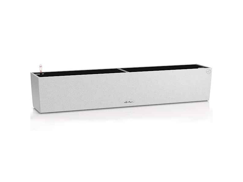 BALCONERA Stone 100 White Self-Watering Planter 100x19x19cm LECHUZA. The planters - cachepots of the BALCONERA Stone series are characterized by the minimalist design simplicity and the appearance and texture of natural stone. They can be placed indoors or outdoors, showing a great contrast of colors and shapes with the flowering plants or foliage plants, with which they will be planted. The BALCONERA Stone 100 Lechuza Self-Watering Planters have a matte appearance, while they are provided as a complete set, together with the self-watering system, the inner planter liner, as well as with Lechuza-Pon, the special planting substrate of LECHUZA. The LECHUZA's exclusive irrigation system (Sub-Irrigation System) guarantees an optimal supply of water and nutrients to the plants for 3 to 4 months. Also, every round planter of the BALCONERA Stone Series does not show the phenomenon of water overflow, since it has a drainage valve. Thanks to the existence of the drainage valve, the plant pots of the BALCONERA Stone Series fully respond to the role of a cachepot and a planter. The BALCONERA Stone 100 Lechuza is so far available in four colors, Stone Gray, Sand Beige, Graphite Black, and Quartz White.