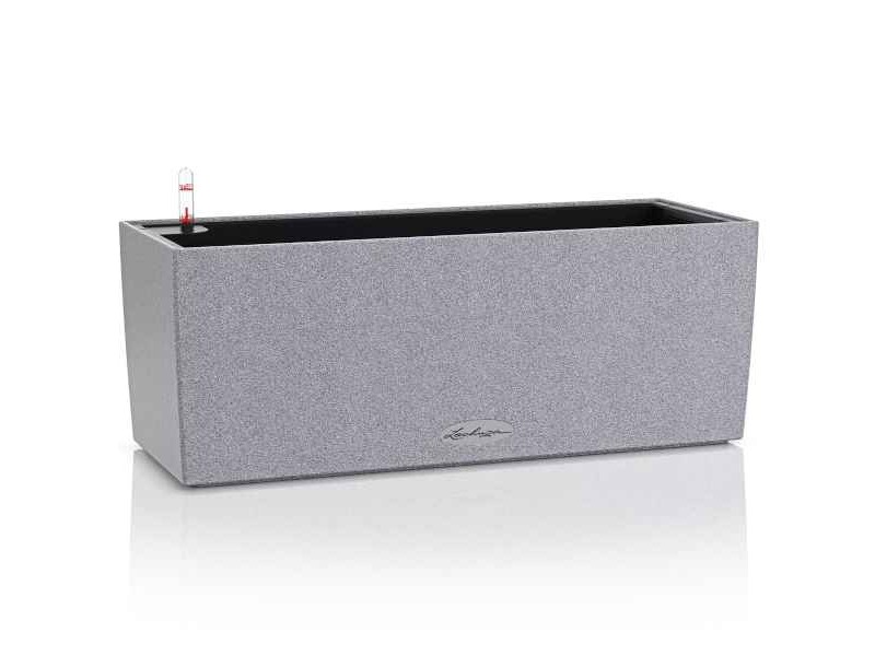 BALCONERA Stone 50 Grey Self-Watering Planter 50x19x19cm LECHUZA. The planters - cachepots of the BALCONERA Stone series are characterized by the minimalist design simplicity and the appearance and texture of natural stone. They can be placed indoors or outdoors, showing a great contrast of colors and shapes with the flowering plants or foliage plants, with which they will be planted. The BALCONERA Stone 50 Lechuza Self-Watering Planters have a matte appearance, while they are provided as a complete set, together with the self-watering system, the inner planter liner, as well as with Lechuza-Pon, the special planting substrate of LECHUZA. The LECHUZA's exclusive irrigation system (Sub-Irrigation System) guarantees an optimal supply of water and nutrients to the plants for 3 to 4 months. Also, every round planter of the BALCONERA Stone Series does not show the phenomenon of water overflow, since it has a drainage valve. Thanks to the existence of the drainage valve, the plant pots of the BALCONERA Stone Series fully respond to the role of a cachepot and a planter. The BALCONERA Stone 50 Lechuza is so far available in four colors, Stone Gray, Sand Beige, Graphite Black, and Quartz White.