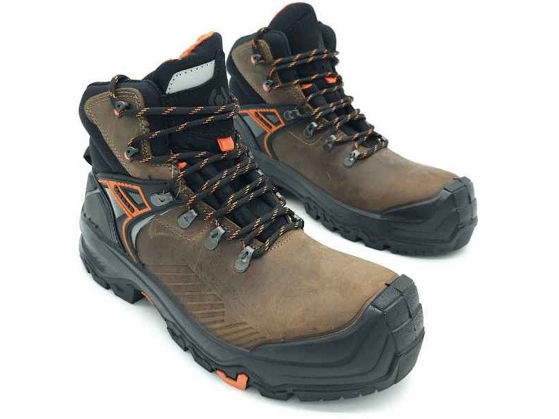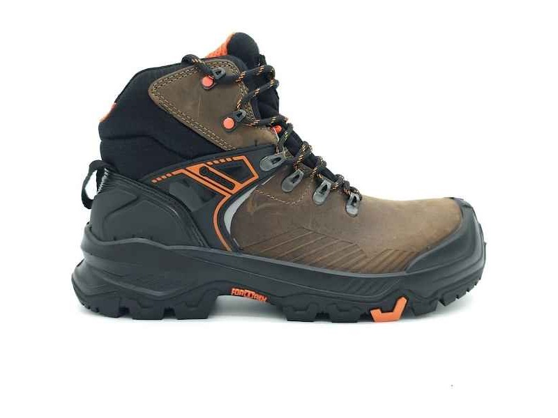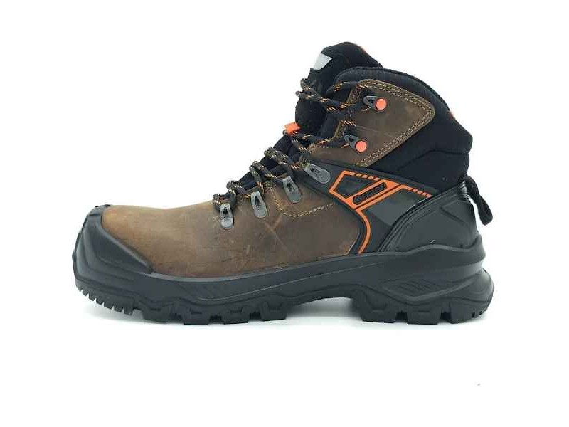 The BASE T-Wall Mid S3S HRO CI HI HI LG FO SR are waterproof safety boots that combine quality and technology. Made by the renowned Italian company BASE, they belong to the Fortrex line, which is intended for demanding sectors such as industry, factories and shipbuilding. These boots provide excellent protection, mainly thanks to the Slim Cap construction of the non-metallic toe cap, thus ensuring safety on the wearer's feet in difficult working conditions. The high-quality waterproof waxed leather used in their construction offers additional protection against the weather, while the anti-static sole prevents the build-up of static electricity. The anti-puncture sole further enhances safety by offering protection from sharp and pointed objects, elements that are important for high risk workplaces. With the dual-density Airtech PU/HRO rubber sole, the boots ensure comfort and flexibility, reducing fatigue during work. The waterproof BASE T-Wall Mid S3S boots are designed to withstand cold conditions in particular, with insulation that can withstand temperatures as low as -17 °C. Their orthopaedic sole complies with the European standard DGUV 112-191, providing support and comfort during movement. In addition, the SmellStop lining is 100% antibacterial, ensuring that feet stay fresh during the day. Available in brown with black detailing and in a range of sizes from 41 to 46, offering the right choice for any wearer looking for the ultimate in safety and comfort at work.