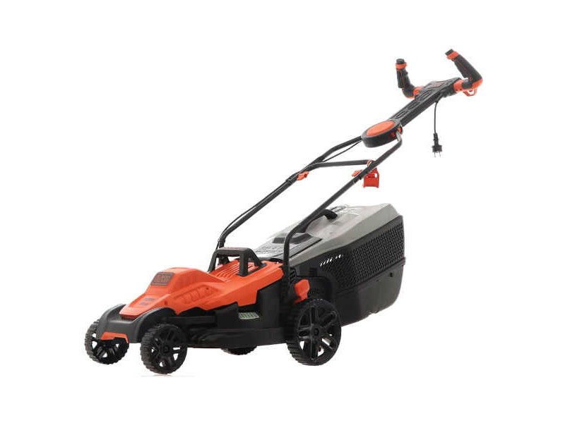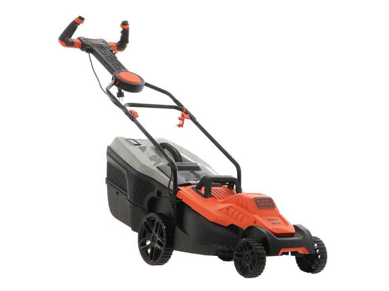 Black & Decker BEMW471BH-QS 1600W 38cm Electric Lawnmower Pushed - Electric Lawn Mowers. The Black & Decker BEMW471BH-QS lawn mower is a very compact and lightweight machine, equipped with a new bike handle grip that ensures excellent maneuverability. Having a 38 cm blade, and great flexibility during work, it is suitable for small to medium gardens, up to 600 square meters, without the use of fuel. It can be adjusted to 3 different cutting heights from 20mm to 60mm. The mowing height is selected, by turning a knob above the rear wheel according to mowing needs, ensuring higher cutting performance. Thanks to the power of the 1600 W motor and the large 45 L grass collector, this lawnmower ensures effortless mowing work by avoiding wasting time on frequent emptying of the collection bag. The collector informs the operator with the relevant indicator about the course of filling with grass, which allows him to know exactly when it is necessary to empty it. Grooved wheels improve operator grip and control of the machine. The BEMW471BH-QS 1600W 38cm Electric Lawnmower it is also equipped with the new strong handle that facilitates lifting, while at the same time it can be transported and stored without much difficulty, as the handle is folded and/or removed. Starting the lawnmower is done by taking advantage of the Easy Start function, by simply pressing the start button. The mower comes with a manufacturer's warranty and is supported by servis as well as genuine spare parts.
