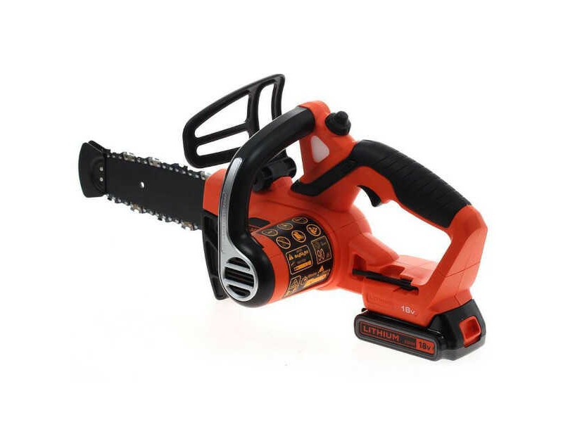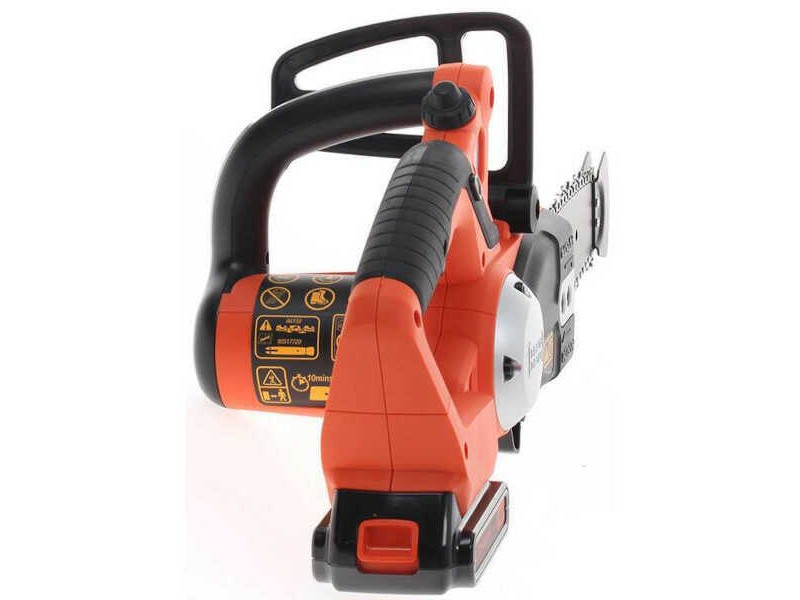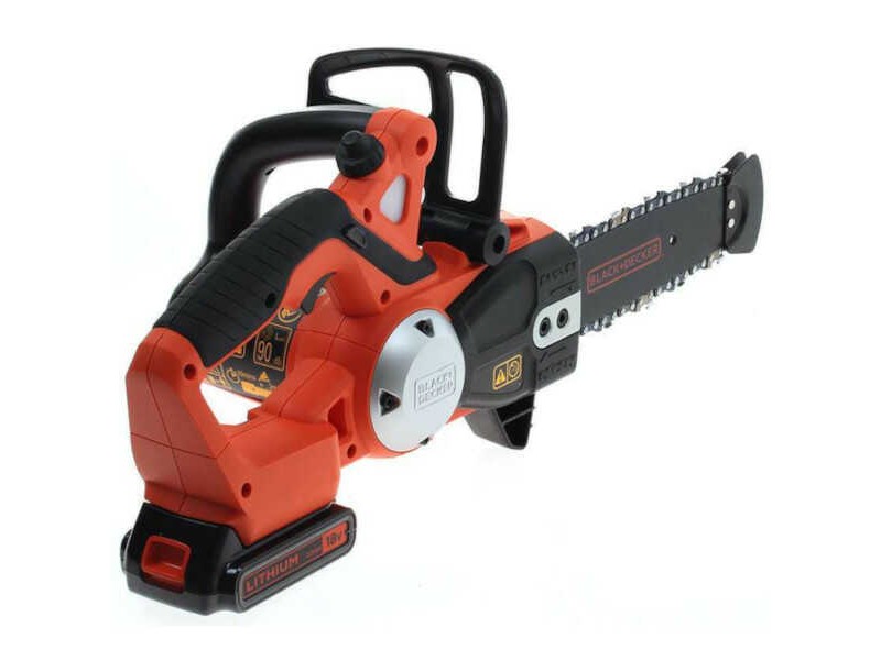 BLACK & DECKER GKC1820L20-QW Battery Chainsaw 18V 2.0Ah Set - Battery Chainsaws. The battery chainsaws 1820PC-QW are products of research and design, from the leading company and the cordles garden cleaning tools BLACK & DECKER. The Black & Decker GKC1820L20-QW chainsaw is used for cutting brushwood, cutting dead branches, shaping trees, and cutting firewood. One of the main advantages of this product is its weight, which did not exceed 3.7 kg. Besides the fact that it is extremely light and easy to handle, it also has rubber inserts for higher levels of operator safety. The cutter is designed to cut approximately 200 branches of 3.5 cm diameter per charge cycle. In terms of battery charging, thanks to lithium technology, the long-lasting operation of the chainsaw and the slow discharge of its battery are ensured. Cutting capacity is 20 cm with effective cutting of 16 cm diameter wood and branches. Also, the machine is equipped with a safety shut-off switch and a kick protection system. The Battery Chainsaw 18V 2.0Ah Set is suitable for logging use, for use in the garden as well as in the home orchard. Offered as a set including the 2.0Ah lithium battery and charger.