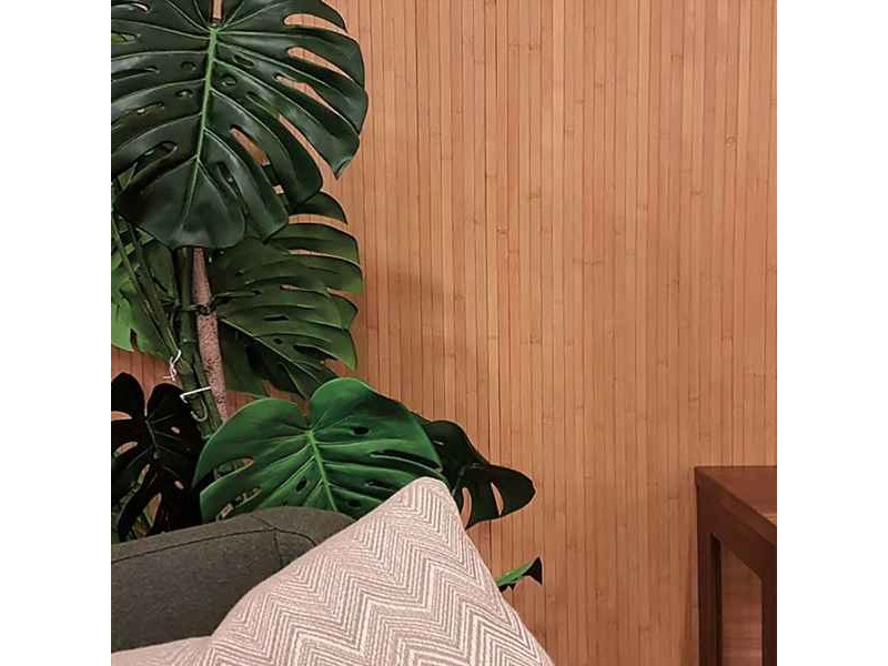 Bamboo Wall Panel 2.5(H)x10m Natural Shade. The VersaBoo Plyroll bamboo wall panel is an innovative solution for those seeking natural materials with high aesthetic value and flexibility in application. Made from 100% natural bamboo, this product combines eco-friendly design with modern decoration, offering endless possibilities for any space. Unlike traditional rigid panels, the processed bamboo slats are mounted on a special gauze backing, creating a flexible bamboo roll that can be easily applied like veneer or wallpaper. Its natural tone adds warmth and authenticity, making it ideal for wall cladding, ceilings, furniture surfaces, and even commercial spaces such as hotels and retail stores. VersaBoo Plyroll stands out for its easy installation, adaptability to curved surfaces, and long-lasting durability. At the same time, it is an eco-friendly decorative solution, sourced from renewable materials and supporting sustainable construction practices. It is perfect for creating natural, modern, or exotic environments while maintaining high quality standards. If you are looking for a bamboo decorative panel that combines flexibility, aesthetics, and practicality, VersaBoo Plyroll is the perfect choice to bring your creative ideas to life.