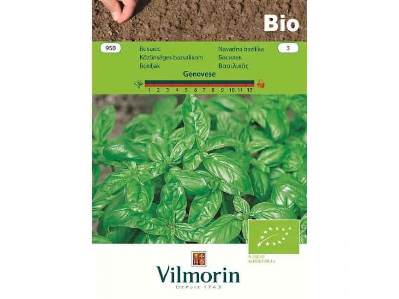 The Basil Bio Genovese 950 is a classic Great Basil product variety with medium leaf size and excellent aroma. It comes from the renowned French seed producer company VILMORIN (founded in 1743), which guarantees the biological origin of the seed, germination and fidelity to the variety of the product.