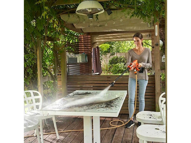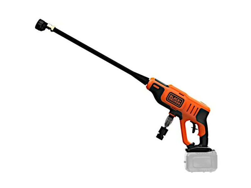Battery Washer 18V 2Ah BCPC18B-XJ BLACK & DECKER - Battery Washers. Durable washing guns-battery tools from BLACK & DECKER. The Battery Washer 18V 2Ah BCPC18B-XJ is portable, light and extremely powerful for its size. Multiplies 5 times the pressure of any common water hose, such as garden hoses. It works either by connecting the washer directly to the garden hose or by pumping water from a bucket or any source of fresh water. The built-in adjustable nozzle provides different flows so that the gun can tackle all cleaning tasks indoors and outdoors, as well as on the go, instantly and efficiently. The Battery Washer 18V 2Ah has a wide range of applications since it can wash cars, bicycles, spray windows, paving, driveways and garages. Productive and efficient, it also cleans grills, patio furniture and all outdoor equipment in general. The washing tool comes without battery & charger.