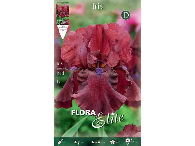 Rhizome of monochrome evergreen perennial Iris with red color of flower. Rhizomatous plant of spring planting whose height can reach 0.75 m. Iris rhizomes can be planted in the garden or in a pot and planter. Planting in pots and planters requires a high quality soil mixture, as well as pumice or other similar material, in the area of the flowerpot bottom, to facilitate drainage, which in the case of rhizomatous plants should be excellent.