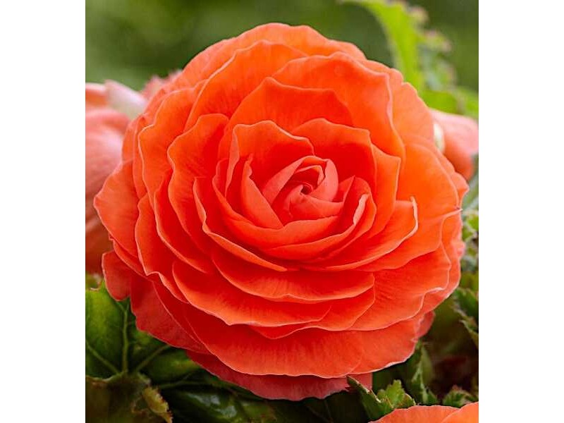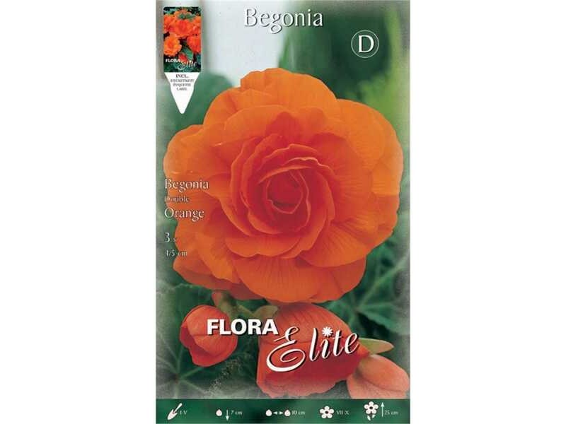 Begonia ‘Double Orange’: tuberous roots of Begonia cultivar with orange color large double flower. The Begonias ‘Double Orange’ are tuberous deciduous perennials, shrubby and spring planting, the height of which can reach 0.25 to 0.30 m. Begonias are acidophilic plants, seeking semi-shady or shady places, and their flowering begins in late spring and lasts until the first cold. Begonia's tuberous can be planted in the garden or in a pot and planter. Planting in pots and planters requires a high quality soil mixture, as well as pumice or other similar material, in the area of the flowerpot bottom, to facilitate drainage, which in the case of tuberous plants should be excellent.
