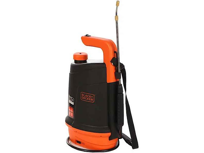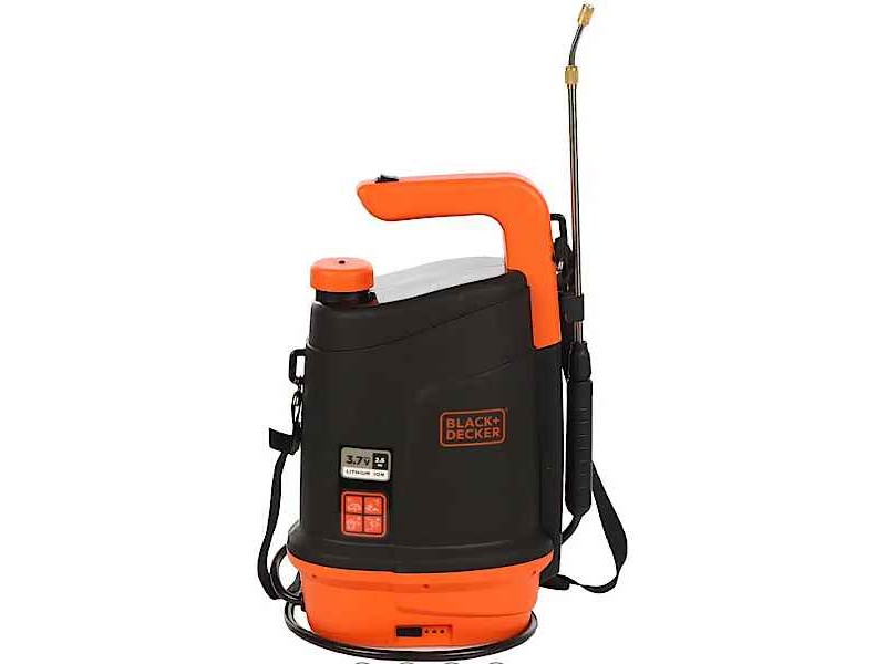 Black & Decker Battery-Powered Backpack Sprayer Pump 5lt (3,7V). The Black & Decker 5lt (3.7V) Battery Backpack Sprayer is an excellent ally for gardening and outdoor work. With its versatile design and powerful rechargeable lithium battery, this tool offers the reliable solution for performing spraying activities such as flower care and cleaning the exterior surfaces of various objects. Its professional construction and high quality materials ensure long-term use and reliability. With a capacity of 5 litres, its container is made of durable polypropylene, which makes it resistant to damage and suitable for many applications. The maximum autonomy of up to 2.5 hours allows for continuous use without interruption, while the maximum operating pressure of up to 2 bar offers the possibility of adjusting the flow according to the needs of each job. With a constant flow rate of 0.33 litres per minute, this backpack sprayer is an apt choice for those who require efficiency and practicality in spraying jobs, making it an essential tool for any garden or outdoor space.