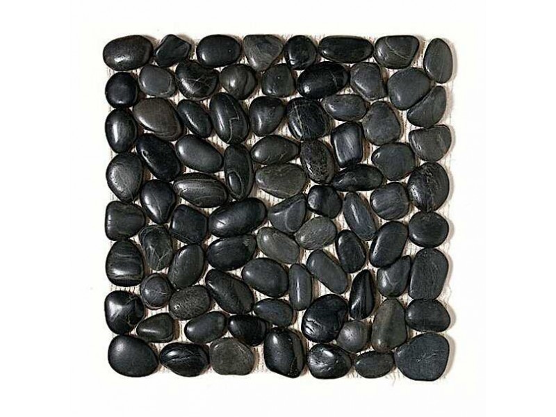 Black Polished Pebble in Net 30x30cm. The black pebbles in a net come from natural stone and have been specially treated to obtain a glossy texture and a polished look. They are placed indoors (living room, kitchen, bathroom, etc.) as well as outdoor (stairs, terraces, patios, etc.), adding a great decorative and useful touch. All pebbles in a net - such as the Black Polished Pebble in Net - because they come from natural rocks, keep their shine and colors stable regardless of exposure.