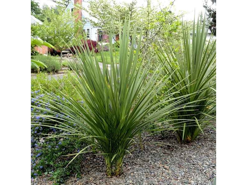 Bush Flax (Cordyline indivisa-syn. Dracaena indivisa) Plant - Tropical Ornamental Plants. The Bush Flax botanically belongs to the Asparagus family (Asparagaceae). It is native to several regions of New Zealand. It is an evergreen tree, small in size, with a height of up to about 8 m. It has a medium growth rate, upright habit, a spherical shape of regular outline and medium density crown. The leaves are simple, leathery, narrowly lanceolate to lanceolate, with entire margins, bluish-green in colour. The fragrant flowers, which appear from mid-spring to late summer, are purplish-white in colour, borne on a panicle inflorescence. The Bush Flax is a particularly easy-to-grow tree. It can be planted in a variety of outdoor environments as it can withstand low temperatures, urban air pollution, and is adaptable to almost any soil type as long as it has excellent drainage. It can be used in both gardening and landscape architecture as a specimen plant, in group plantings and compositions. It is also used as an indoor plant and, thanks to its resistance to salt sprays, it is even planted in seaside gardens.