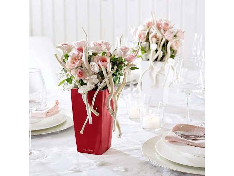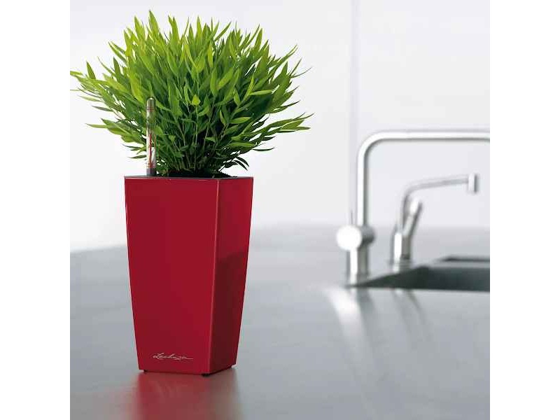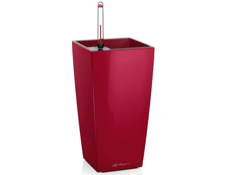 CUBI Maxi Scarlet Red 14x14x26cm Self-Watering Planter-Cachepot LECHUZA Complete. The square pots of the CUBI Series in Scarlet Red color with dimensions 14x14x26cm, is an excellent choice for those who want to combine elegance and functionality in the care of their plants. With satin texture, they are intended for the decoration of any indoor or covered outdoor space, presenting an aesthetically appealing image. The CUBI Maxi Self-Watering Planters are supplied as a complete set, together with the self-watering wick system as well as Lechuza-Pon, the LECHUZA's special planting substrate. The LECHUZA's exclusive irrigation system guarantees an optimal supply of water and nutrients to the plants for 3 to 4 months. With the possibility of accommodating small plants either foliage or flowering, it offers both aesthetics and practicality. This is because its simple yet refined design makes it adaptable to any style of decoration, easily blending in with any environment, whether contemporary or more traditional. The CUBI Maxi Planter-Cachepot is so far available in three colours: White, Charcoal and Scarlet Red.