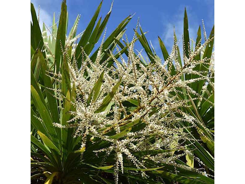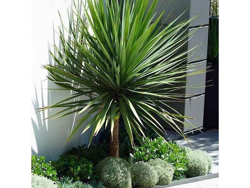 Cabbage Tree (Cordyline australis-syn. Dracaena australis) Plant. The Cabbage Tree botanically belongs to the Asparagus family (Asparagaceae). It is native to several regions of New Zealand. It is an evergreen tree, large in size, with a height of up to about 20 m. It has a moderate growth rate, upright habit, a spherical shape of regular outline and medium density crown. The leaves are simple, leathery, narrowly lanceolate or lanceolate in shape, with entire margins, and are dark green in colour. The fragrant flowers, which appear from mid-spring to late summer, are white in colour, borne on a panicle inflorescence. The Cabbage Tree is a particularly easy-to-grow tree. It can be planted in a variety of outdoor environments as it can withstand low temperatures, urban air pollution, and is adaptable to almost any soil type as long as it has excellent drainage. It can be used in both gardening and landscape architecture as a specimen plant, in group plantings and compositions. It is also used as an indoor plant and, thanks to its resistance to salt sprays, it is even planted in seaside gardens.
