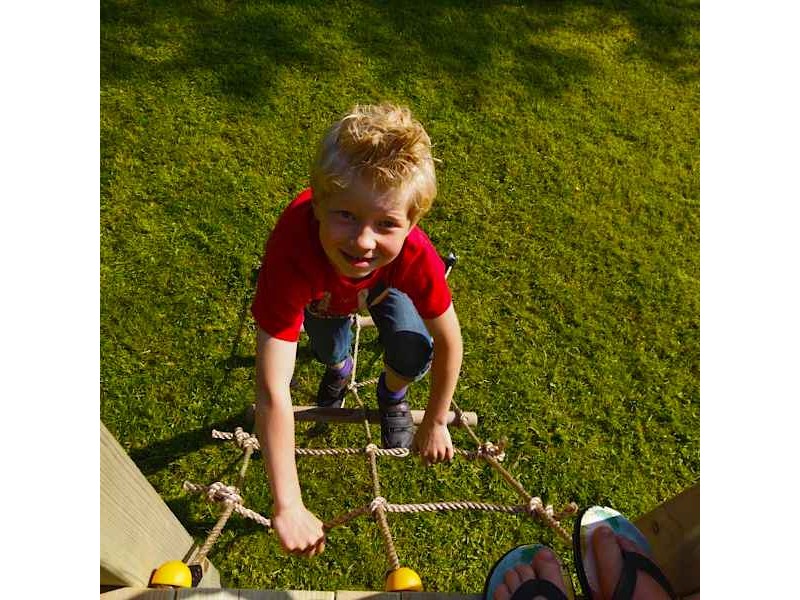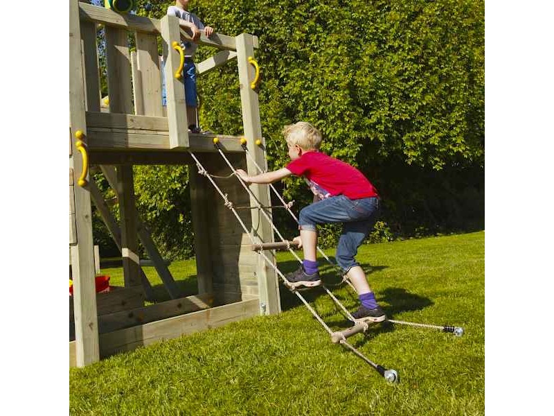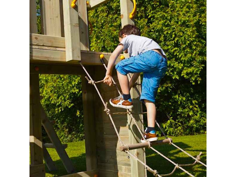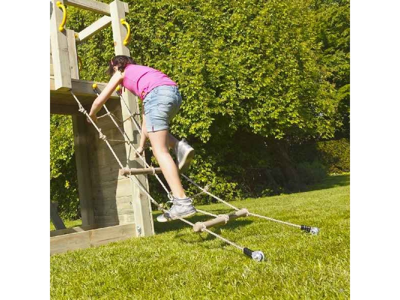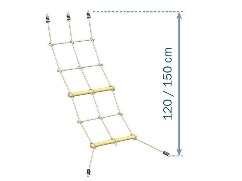 Climb Net with Anchors 50x200cm for Towers Blue Rabbit. The 50x200cm climbing rope for Blue Rabbit 2.0 play towers is the perfect accessory to transform any play tower into a world of adventure, action, and exploration. Specifically designed for platform heights of 120 cm and 150 cm, it is fully compatible with all Blue Rabbit 2.0 towers, ensuring easy installation and maximum stability. The climbing net is made from durable synthetic rope, suitable for outdoor use and resistant to weather conditions, maintaining its safety and performance over time. The two wooden support rungs make climbing easier and safer, providing better grip and confidence for children during play. The set includes all necessary installation components, such as metal parts, screws, and ground fixing bases, allowing for quick and secure setup without additional purchases. Beyond fun, this climbing rope actively supports the development of motor skills, balance, strength, and coordination through interactive physical play. It is an ideal choice for parents seeking high-quality playground equipment that promotes imagination, confidence, and safe outdoor activity in the garden or yard.