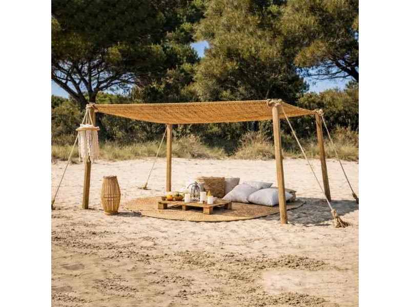 The Coconut Fiber Shade Sail M1 Economy 4x5m Rectangular is a natural and practical solution for creating shade in outdoor spaces, combining functionality, durability, and natural aesthetics. Made from 100% natural coconut fibers, this shade sail features the characteristic brown color of coconut fiber, which blends perfectly with gardens, patios, terraces, beach bars, cafés, and hospitality venues. Its specially designed weave allows natural airflow, providing coolness and shade while preventing heat from being trapped underneath, creating a more comfortable and pleasant outdoor environment during warm weather. The rectangular 3x3x3 meter shape allows flexible installation in various layouts and can be combined with additional shade sails to cover larger areas while enhancing the visual appeal of the space. The coconut shade sail is a popular choice for those looking for natural shading solutions, as it combines durability, eco-friendly materials, and a distinctive design that evokes a tropical atmosphere. It is offer an economical shading option for both businesses and homeowners who want to create a cool and welcoming environment without high installation costs. Thanks to its natural construction, the shade sail provides an authentic and warm aesthetic that enhances any outdoor setting, while its durable weave ensures reliable shading and everyday durability. If you are looking for a natural shade sail with attractive design, breathable structure, and easy installation, the Economy Coconut Shade Sail is a reliable and cost-effective solution for upgrading any outdoor space.