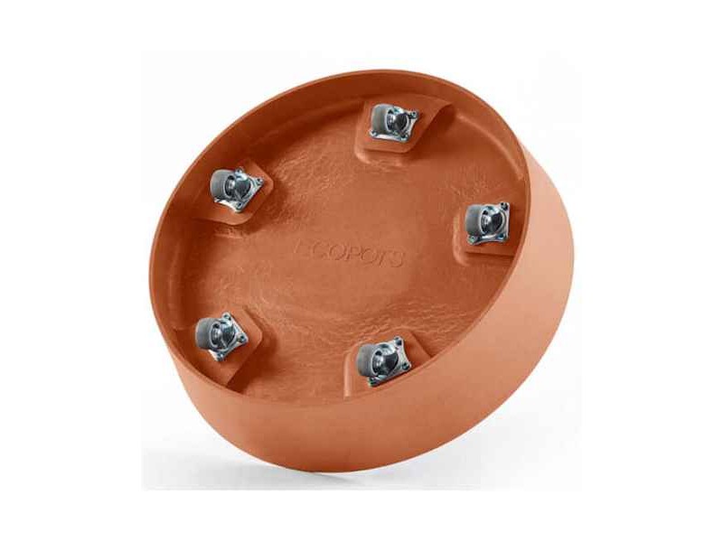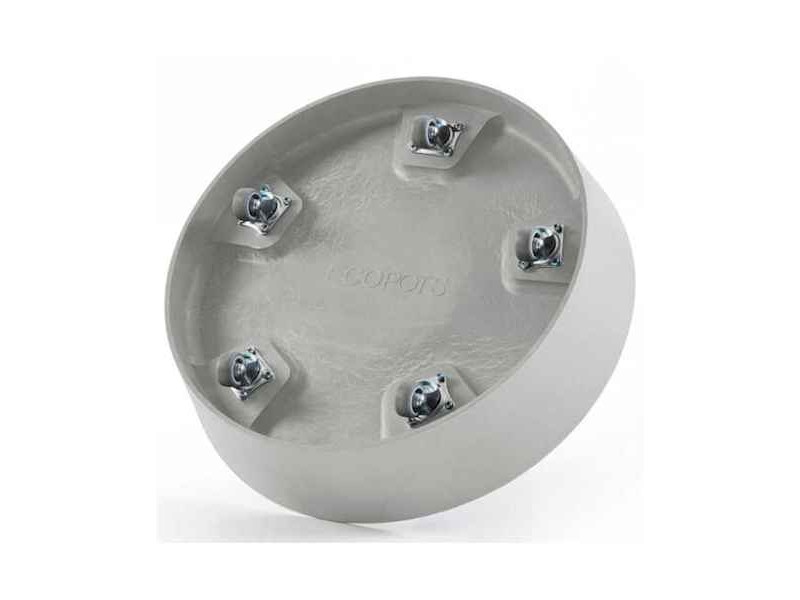 Ecopots Saucer Wheels Round 30 Ø28.7cm for Planter. The Saucer with Wheels is a smart and elegant solution for effortlessly moving your planters while keeping floors protected. Designed with five discreet integrated elastic wheels, it allows smooth movement even for heavy pots, making it ideal for both indoor and outdoor spaces such as living rooms, offices, balconies, and patios. This round planter saucer with wheels is perfectly compatible with the Amsterdam series as well as other round planters of similar diameter (Oslo High Ø35x51.5cm), offering stability without compromising aesthetics. A standout feature is the integrated copper ring, which helps reduce mosquito breeding in standing water around the plant, improving overall hygiene. At the same time, the saucer collects excess drainage water, protecting sensitive surfaces like wood, tiles, or marble from moisture and stains. The matte, hand-finished texture and neutral Grey color blend seamlessly with Ecopots planters, creating a clean, cohesive, and modern look. Made from durable recycled materials, the Ecopots 30 saucer with wheels is more than just a planter accessory—it’s a practical, design-driven solution that delivers everyday comfort, protection, and effortless mobility. It is available in 5 colors, Grey, White Grey, Dark Grey, Taupe, and Terra Cotta. It is recommended to remove the plug from the bottom of the pot before use.
