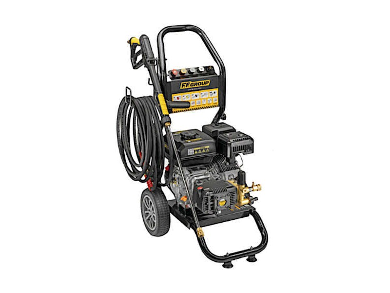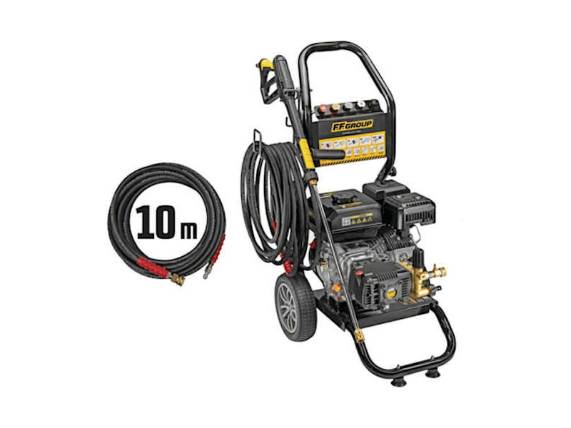 FF Group GHPW 220 PRO Petrol High Pressure Cold Water Washer 185bar 7hp 756L/h. Professional petrol-powered washing machines for cleaning surfaces and objects from the Greek company FF Group. The GHPW 220 PRO Cold Water Washing Machine is intended to clean dirt and grime in professional and domestic outdoor and outdoor spaces from 90 up to 150 m², as well as to clean and wash various items. The water washer is the appropriate solution especially in those cases where there is no connection to the electrical network, as the internal combustion engine guarantees continuous operation. Its sturdy metal frame provides excellent protection to its mechanical parts while at the same time ensuring sufficient balance of the machine as well as good absorption of the generated vibrations. The Cold Water Machine GHPW 220 PRO, which belongs to the FF Group professional series of washing machines, is characterized by its compact structure, easy portability, robust frame as well as its great power. The professional high pressure washer GHPW 220 PRO is equipped with with an air-cooled four-stroke heavy-duty 7hp engine that allows it to operate at a pressure of 185bar and provide cold water up to 756 liters/hour. It has a three-piston crank pump, an automatic by-pass valve with pump head pressure relief, as well as an anti-vibration system. The oil change is extremely easy, while the general maintenance of the washing machine is also easy. The Professional High Pressure Washer GHPW 220 PRO is delivered with a pistol, a lance with an adjustable nozzle, a high pressure hose 15 meters long as well as 4 nozzles - low pressure nozzle, 0°, 15° and 40°.