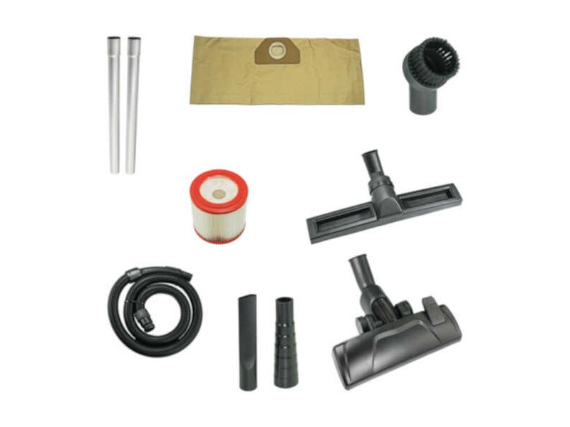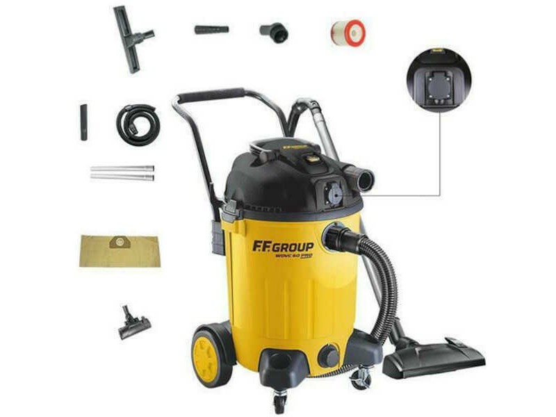 FF Group WDVC 60 PRO 60L 1200W Electric Vacuum Cleaner - Electric Vacuum Cleaners. Designed in Greece and manufactured under the supervision of FF GROUP, the WDVC 60 PRO vacuum cleaner is durable and reliable. It is offered at the right value for money and is intended for private domestic and semi-professional use. It is used for cleaning semi-professional spaces, parking spaces of houses, small workshops, warehouses, etc. It has a powerful 1200W two-stages motor capable of suctioning 180 mbar of liquid and solid pollutants, power tool socket with automatic START/STOP and power tool socket outlet. The vacuum cleaner is equipped with a flexible suction hose connected to a set of aluminum pipes. Comes with pleated Hepa filter, crevice nozzle, furniture pad, liquid and solid suction pad, suction pad and paper vacuum bag. Moving and storing the vacuum cleaner is extremely easy, thanks to the convenient metal handle and 4 wheels it carries. The rear wheels are stable and of large diameter, while the front wheels are small and turn in any direction. The FF Group WDVC 60 PRO 60L 1200W Electric Vacuum Cleaner comes with a 2-year manufacturer's warranty and is supported by service as well as original spare parts.