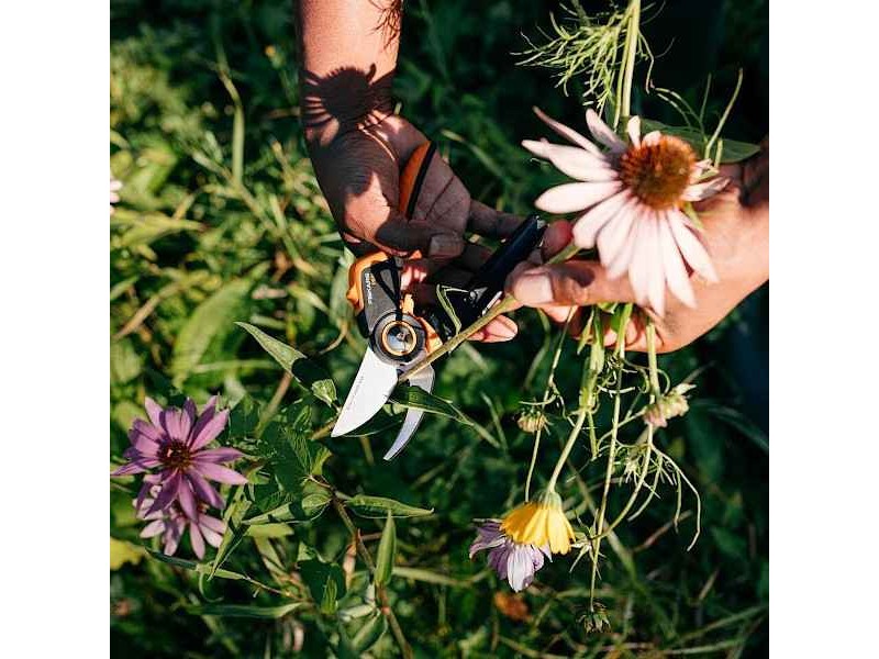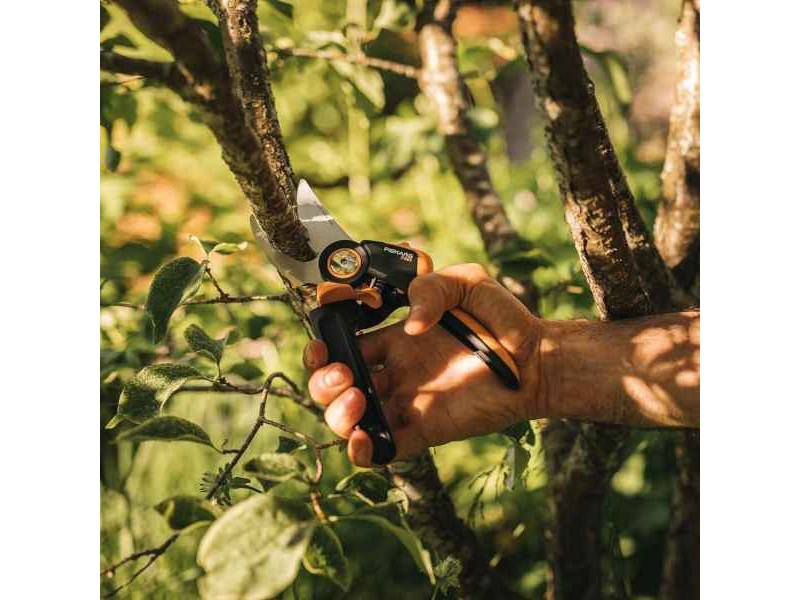 FISKARS PowerGear X P961 22.2cm Pruner - Bypass Garden Pruners. Ergonomic pruners from the renowned Finnish company Fiskars (founded in 1649). They feature groundbreaking technological innovations, including PowerGear™ technology that maximises power where you need it most, giving you 3x more cutting power on tough, thick branches and twigs. The pruner's fully hardened, precision-sharpened blade stays sharp longer and has a low-friction coating that resists rust and allows for smoother, easier cuts. The carefully designed, lightweight, durable FiberComp™ handle conforms to the natural shape of your hand, reducing fatigue, while the treated SoftGrip™ upper handle made of PVC-free, fiberglass-reinforced plastic has surface protrusions so both handles offer the user a secure yet comfortable grip. A sliding lock closes or opens the pruner, helping to ensure safe transport and storage, and is conveniently positioned for quick and easy activation. The Fiskars PowerGear™ X pruner was the 2017 winner of the prestigious Red Dot Best of the Best design award. Available with a 25-year manufacturer's warranty.
