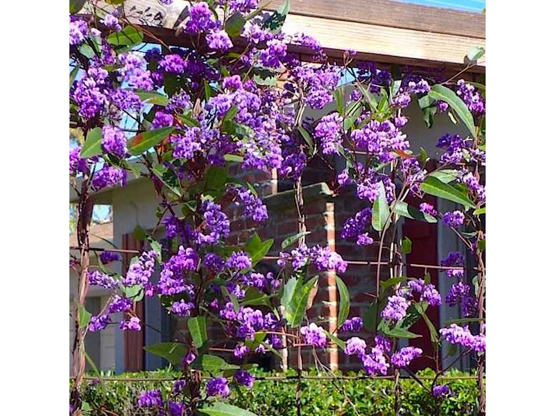 False Sarsaparilla (Hardenbergia violacea) Vine Plant - Vine Flowering Plants. The False Sarsaparilla belongs botanically to the family Fabaceae or Leguminosae. It is native to various regions of the Australian continent. It is a medium to large-sized climbing plant (or prostrate subshrub), which, thanks to its twining ability, can reach a height of about 8 m, supported on trees or surfaces. It is perennial and evergreen, with a medium growth rate, high crown density and a climbing habit. The leaves are alternate, smooth-textured, ovate-lanceolate in shape with entire margins, the lamina of which is bright green in colour. The monoecious flowers, borne on racemes inflorescences, are violet-white in colour, bell-shaped, and appear from late winter to late spring. The False Sarsaparilla is a relatively easy plant to grow, but it is not at all tolerant of very low temperatures and calcareous soils. Its growth is favoured when it is placed in sunny or semi-shaded areas, with normal moisture levels, and soils of medium fertility with excellent drainage. The False Sarsaparilla is utilized as a climbing plant for creating a hedge, as well as in pergolas or trellises. It is also planted alone, or in group plantings and compositions. Its good tolerance to salt sprays also allows it to be grown in seaside gardens.