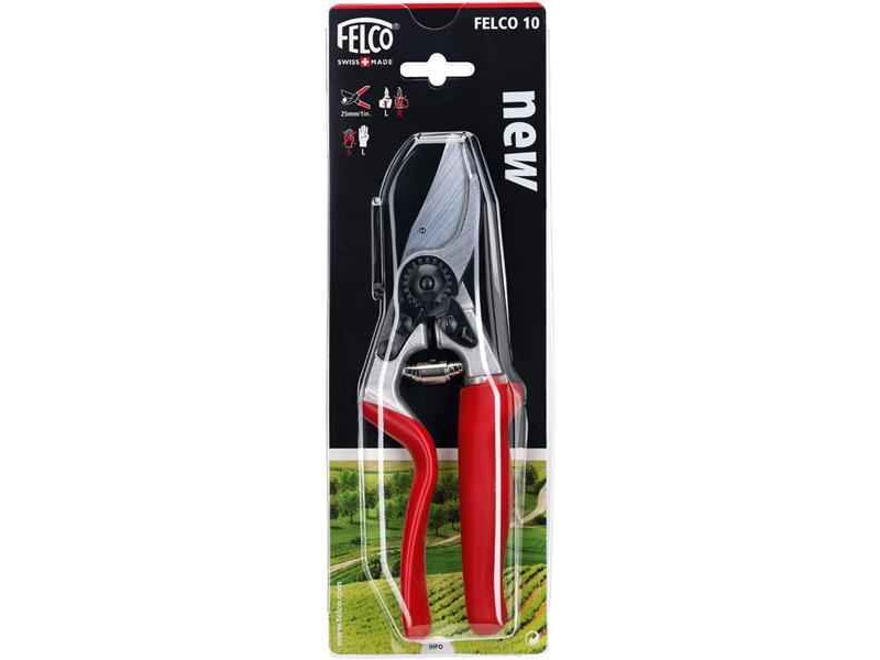 The Felco 10 is the right tool for left-handed professional growers, gardeners and horticulturists looking for a high performance and ergonomically designed secateurs. With a length of 21 cm and a cutting diameter of 25 mm, this pruning shears stands out for its perfect fit for large hands, while offering a smooth and easy cut. The Felco 10's unique revolving handle helps reduce the force required by 30%, allowing for a more relaxed and natural experience during pruning, without sacrificing reliability in the most demanding tasks. One of the most important features of the Felco 10 is its innovative design, which makes cutting more comfortable, reducing hand fatigue. The rubber shock absorbers offer extra protection to your wrist, ensuring that every movement is pleasant and tension-free. The pointed blade design combined with the angled head allows for precise cuts, while the precision adjustment mechanism allows you to adjust the cutting head to suit your needs. Using the Felco 10 is a real revelation for left-handed people, as the tool not only makes pruning easier, but also offers the ability to do it with confidence and precision. The Felco 10 emerges as an essential tool for every professional grower, landscaper and gardener who wishes to combine quality and ergonomics in their daily work.