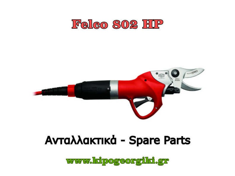 Felco 802 HP Genuine Replacement Parts. The whole range of original spare parts of the Felco 802 HP electric pruner is available, with the guarantee of the official Greek dealership. Each spare part is identified by its corresponding part number. The spare parts offered are listed in detail below.