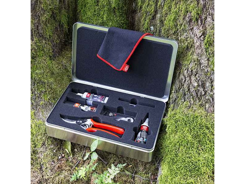 The original Felco 933 box is an indispensable and practical tool for every owner of the famous FELCO 2 pruning shears, offering a complete maintenance and service kit. This box contains all the necessary tools and spare parts, allowing users to keep their pruners in top condition. Because regular maintenance and timely replacement of worn parts is vital to ensure maximum performance and longevity of tools, ensuring they are always ready for use. The FELCO 933 is not only a practical maintenance tool kit, but also a prototypical gift for gardening enthusiasts who wish to look after their pruners in a professional manner. More specifically, the set includes the FELCO 2 pruning shears, a spare blade (2/3), the appropriate wrench (2/30), a sharpener (FELCO 905) to keep the blades sharp, a lubricating spray (FELCO 980) for smooth operation, a resin remover (FELCO 981) to eliminate sticky residue, grease (FELCO 990) to protect against wear and a cleaning cloth to maintain tool hygiene. This complete equipment allows users to sharpen, clean and lubricate their FELCO 2 pruners, ensuring long-lasting performance and making the set suitable for both amateur and professional gardeners and horticulturists. Investing in the FELCO 933 is an investment in the durability and effectiveness of your tools.