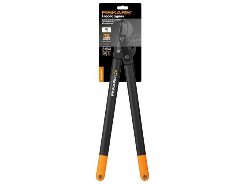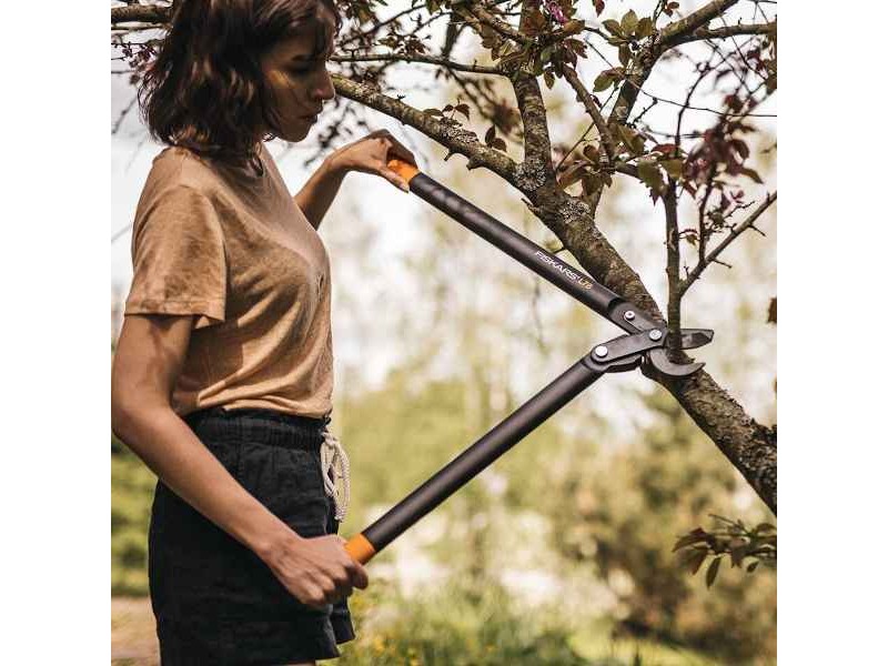 Fiskars PowerGear Lopper Bypass Hook Head (L) L78 - Pruning Loppers. Practical, durable and effective loppers from the renowned Finnish company Fiskars (founded in 1649). The PowerGear (L) L78 ισ a sure ally for those who want to prune their trees with ease and efficiency. The tool's long handles, made from durable FiberComp™, ensure that the work is effortless, keeping the accompanying weight low. This feature is particularly important for the most demanding pruning jobs, allowing users to work for longer periods without feeling fatigue. The innovative PowerGear™ technology on this lopper makes cutting easier, making it three times simpler than traditional methods. This means you can prune with less effort and energy, while ensuring clean and precise cuts. The high-quality reinforced steel upper blade promises long-term durability and reliability, while the non-stick PTFE coating makes the cutting process easier, reducing friction and making blade cleaning a breeze. Another innovation of the loppers is the curved lower blade (the anvil), designed to hold the branch more firmly during cutting. This design allows the user to enjoy total control and precision, without worrying about damaging other shoots or branches on the tree. Overall, the PowerGear (L) L78 is an excellent choice for gardeners and growers looking for a tool that combines power, comfort and cutting innovation.